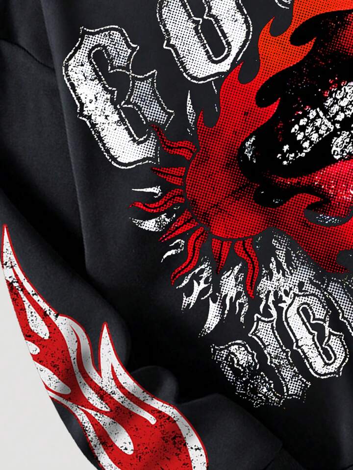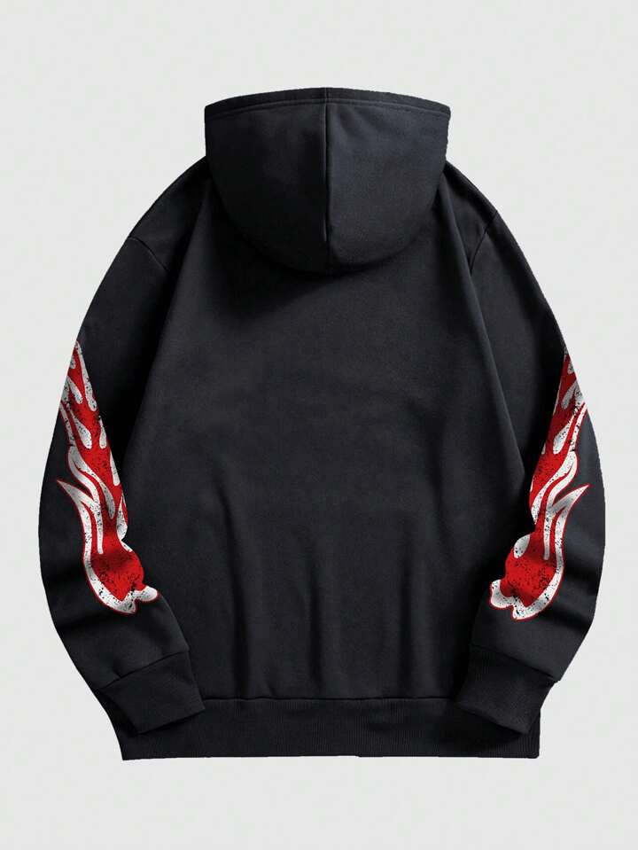 Street Life Herren Lässig Lippen- und Buchstaben-Muster Thermofutter Kapuzenpullover, Herbst/Winter, Schule
