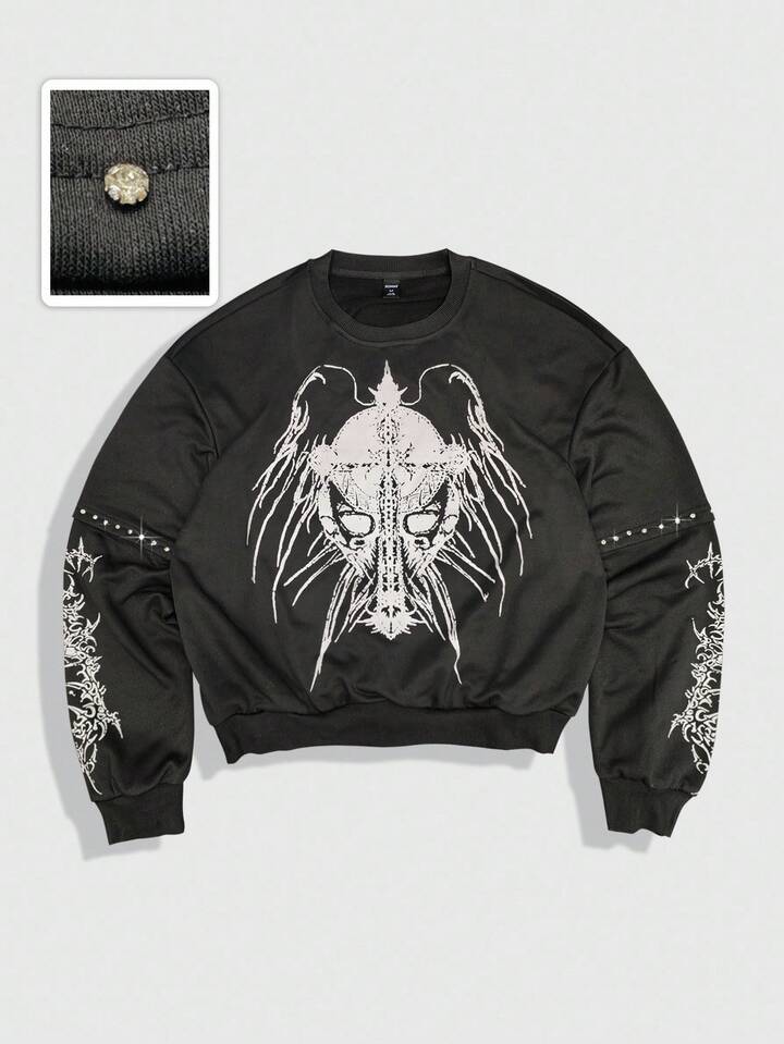 Street Life Herren Lässig Loose Fit Langarm Bedrucktes Rundhalspullover-Sweatshirt, Drop-Shoulder