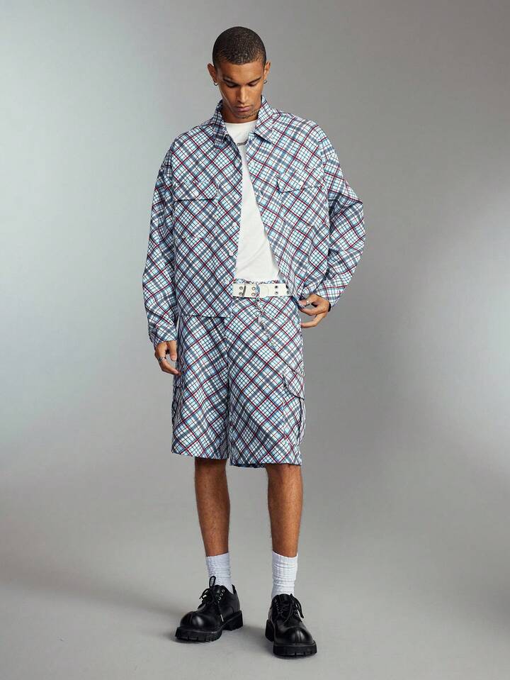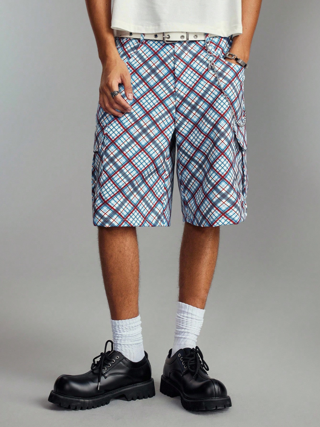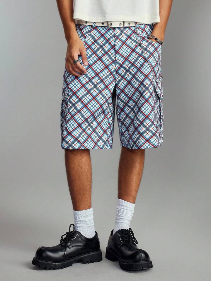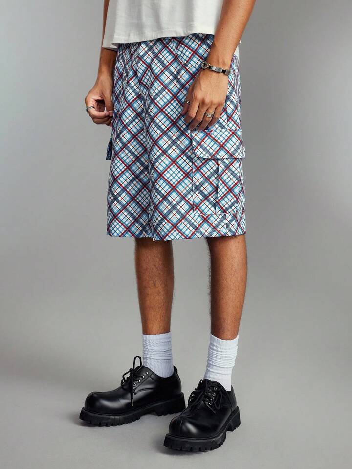 Street Life Herren Lässige karierte Loose Cargo Shorts, Sommer
