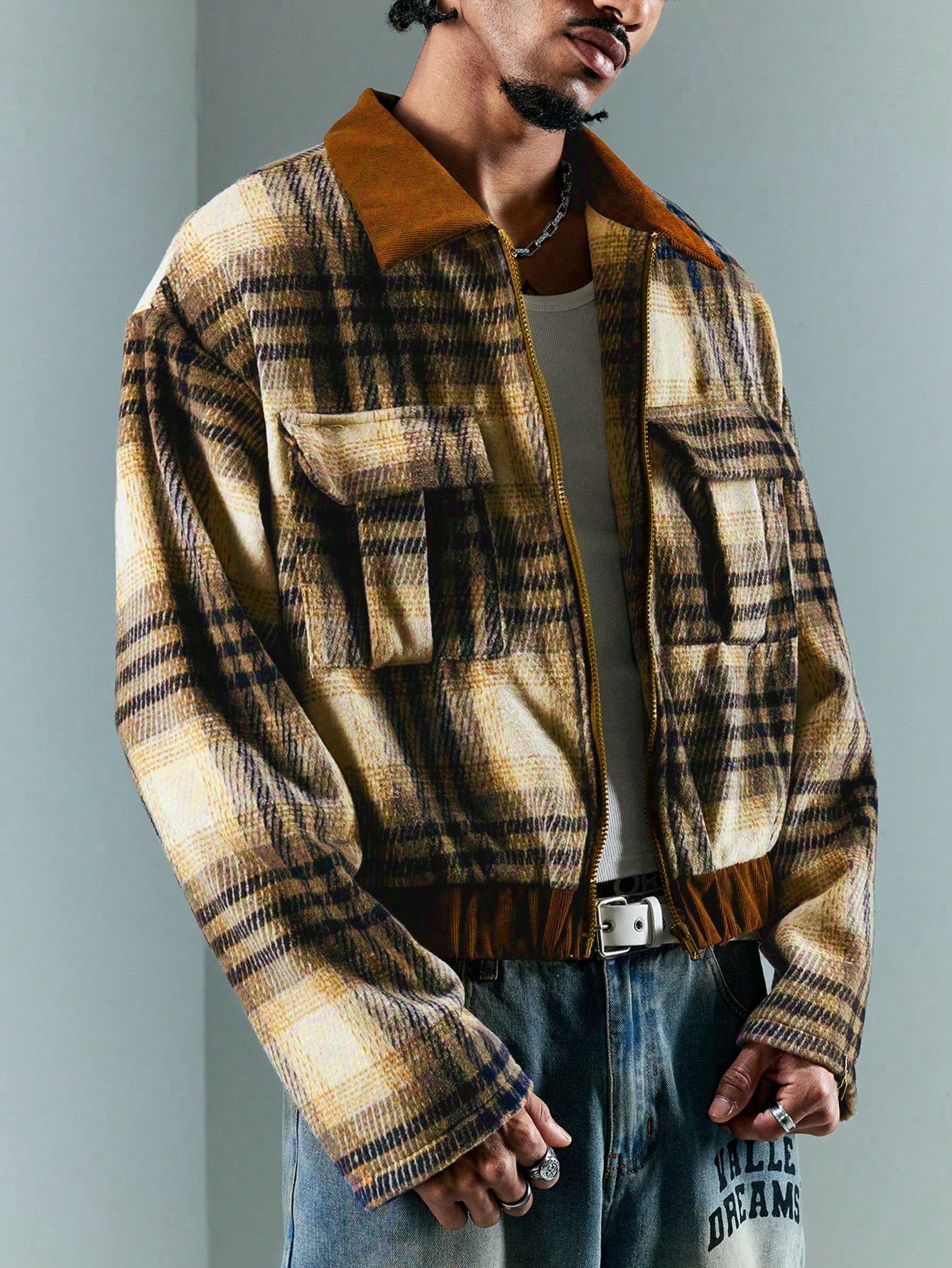 Street Life Herren Lässig Karomuster Patchwork Kurz Dicke Jacke
