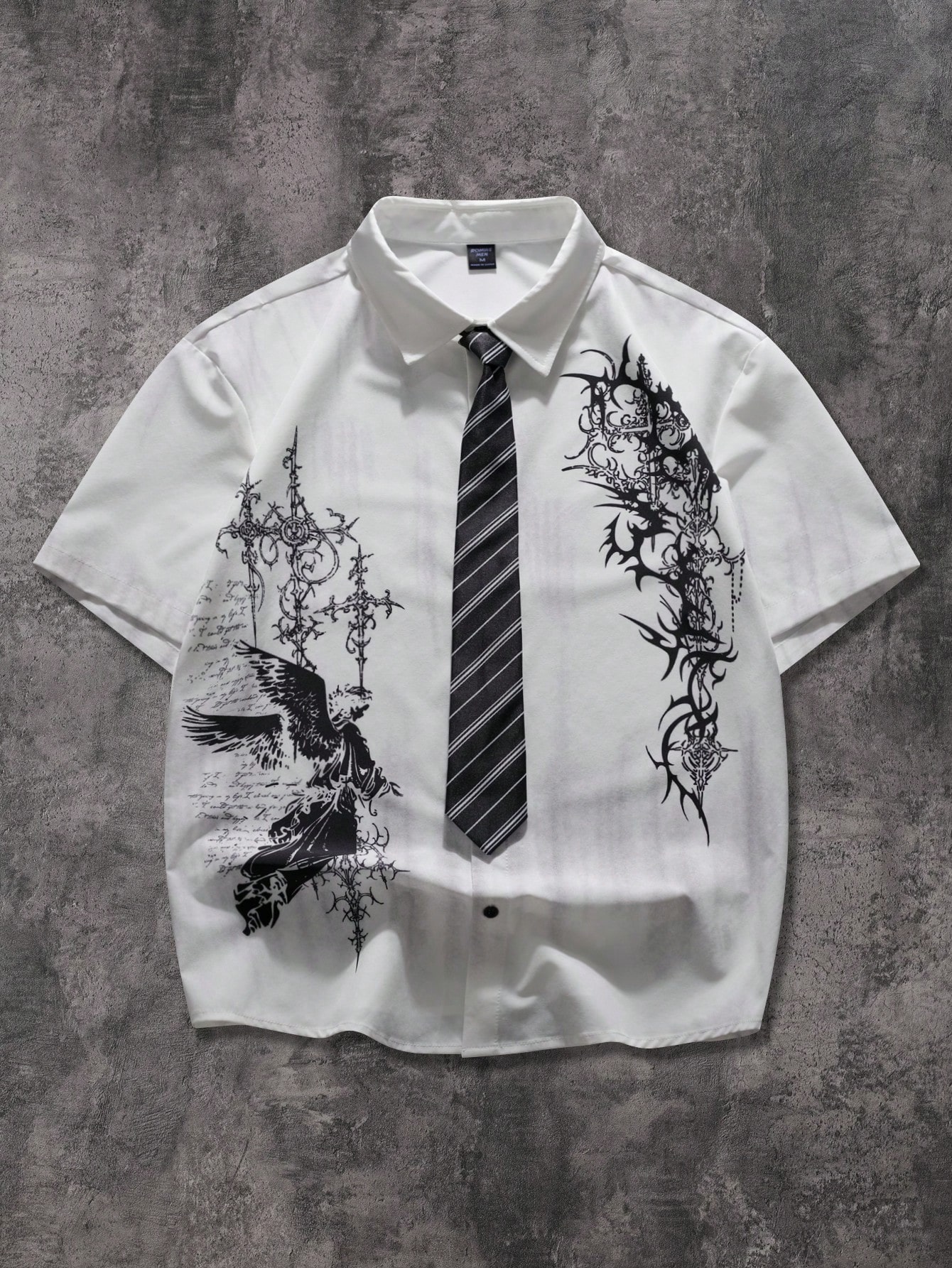 Street Life Herren Lässig Bedrucktes Kurzarmhemd