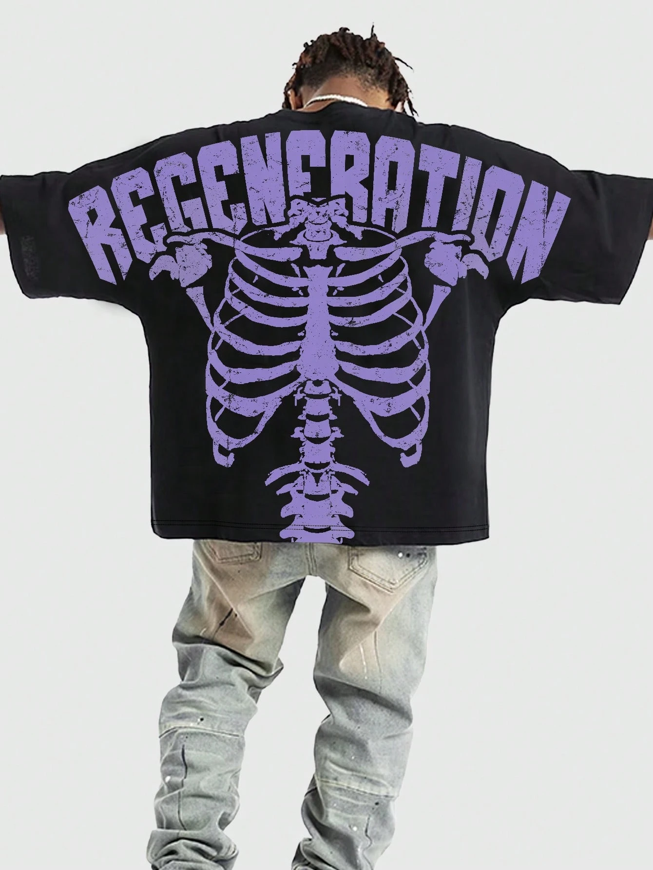 Street Life Herren Lässig Totenkopf & Buchstaben Muster Kurzarm T-Shirt, Sommer