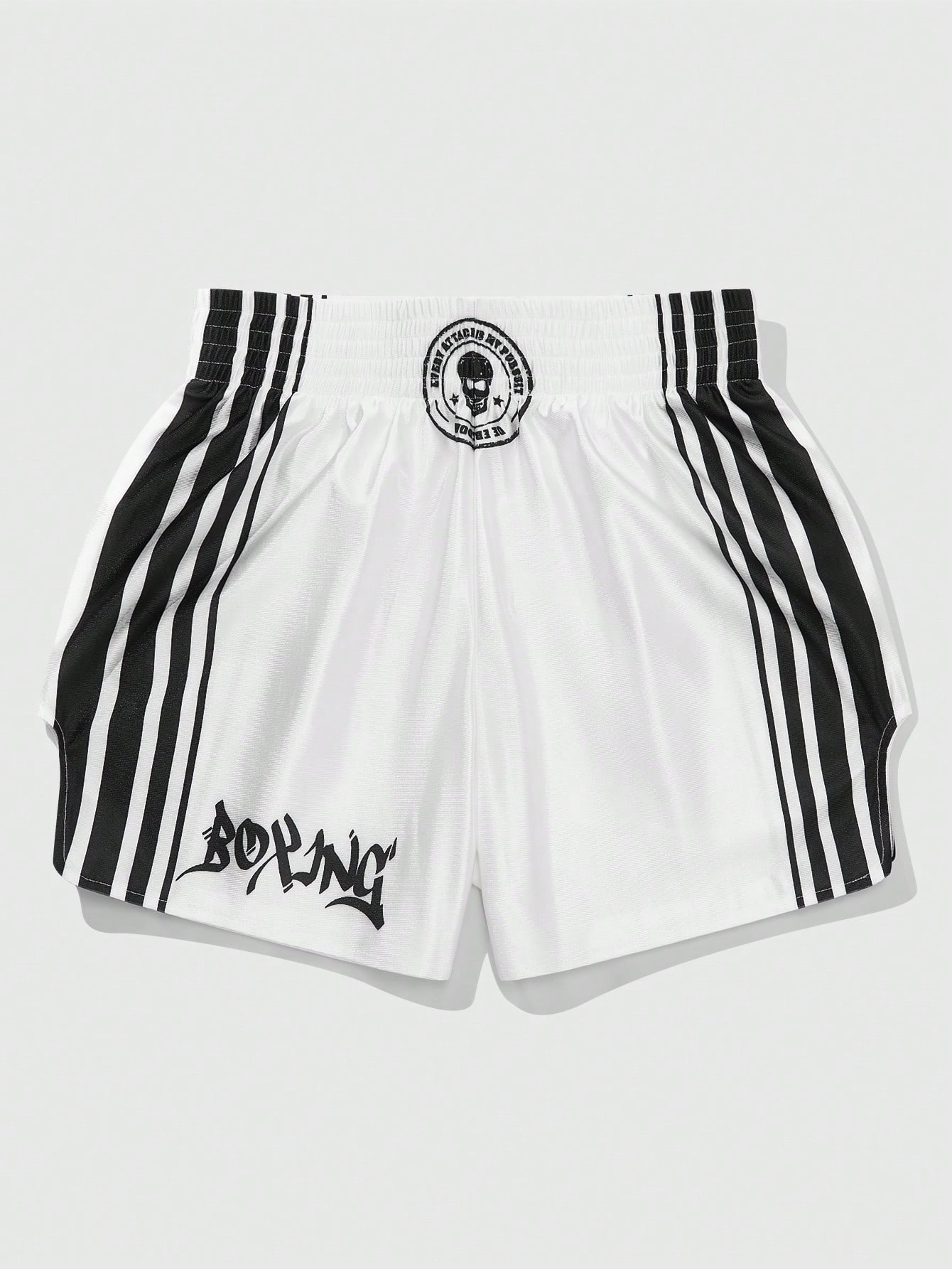 Street Life Herren Lässig Sport Schädel- und Buchstaben Muster Kontraststreifen Seite Boxershorts