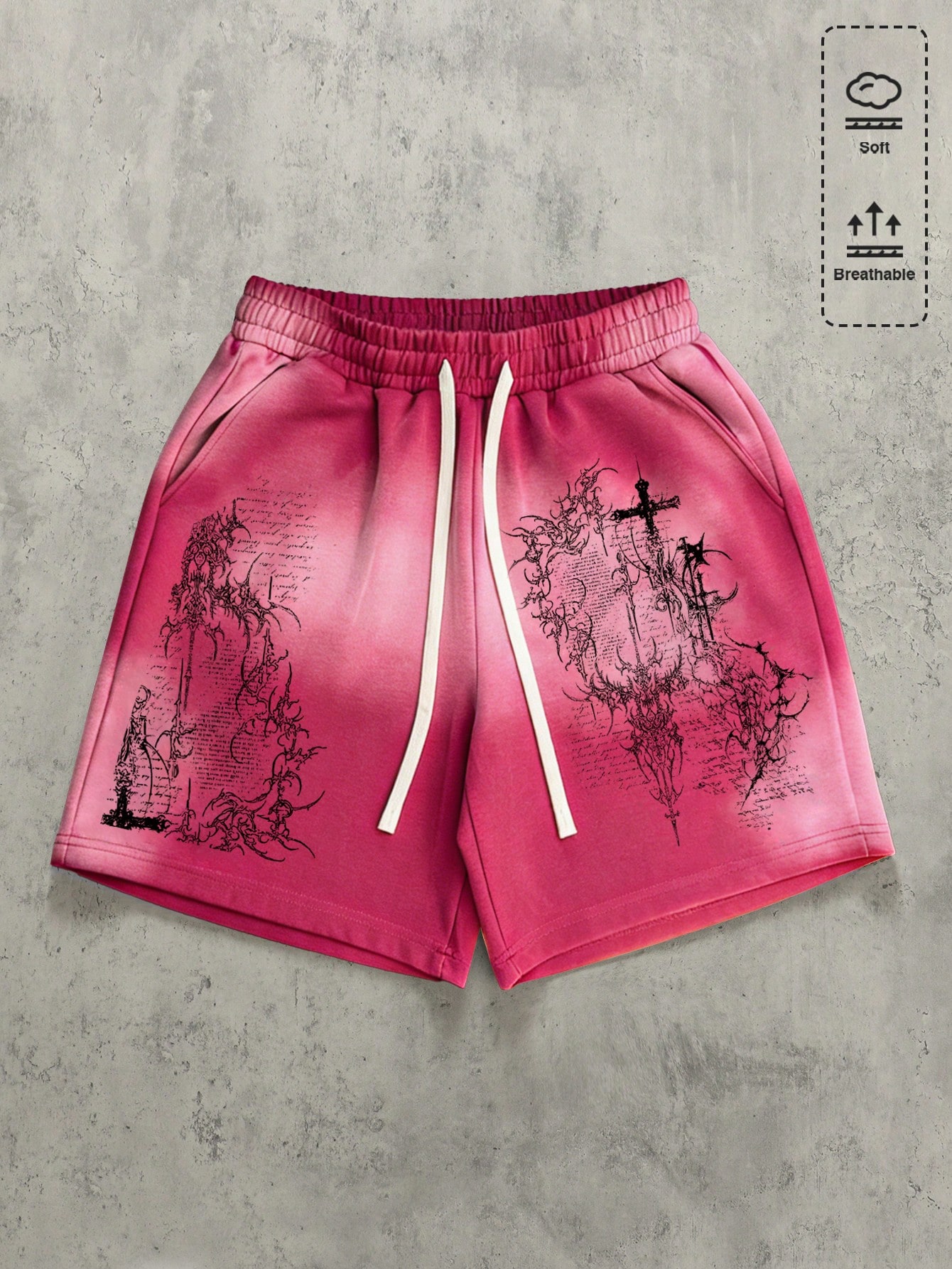 Street Life Herren Lässig Street Graffiti Muster Shorts mit Kordelzug, Sommer