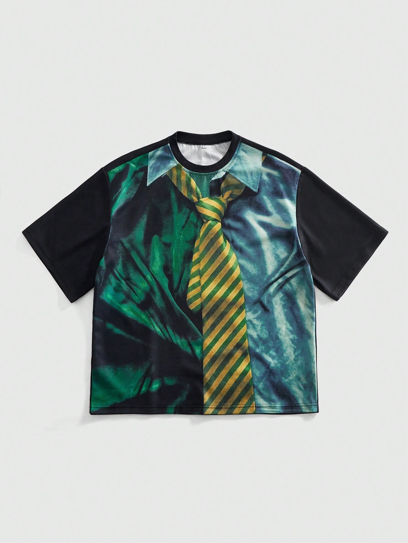 Street Life Herren Lässig Batik-Muster Rundhals Kurzarm T-Shirt, Sommer