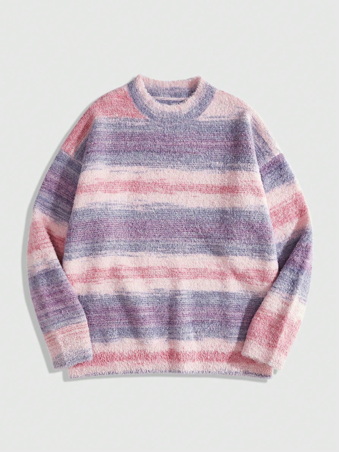Street Life Herren Farbblock Allover-Muster Rundhals Lässig Langarm Pullover