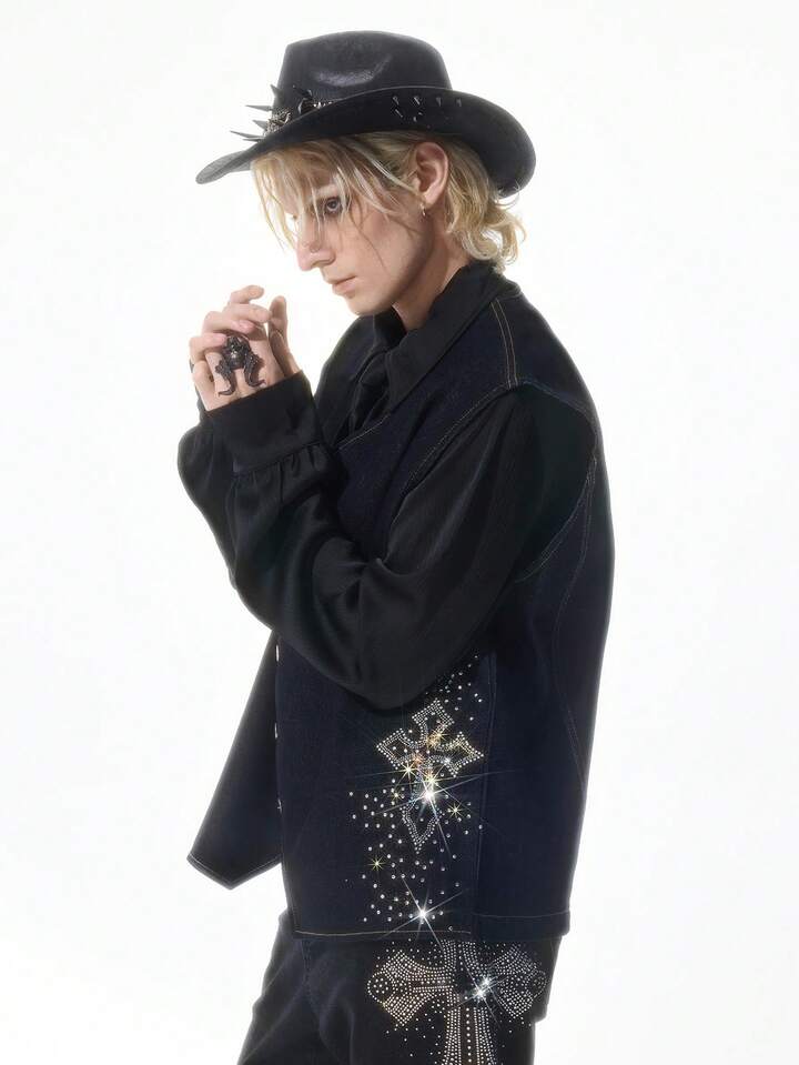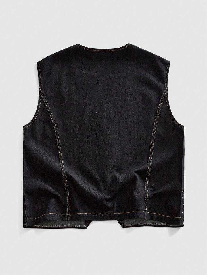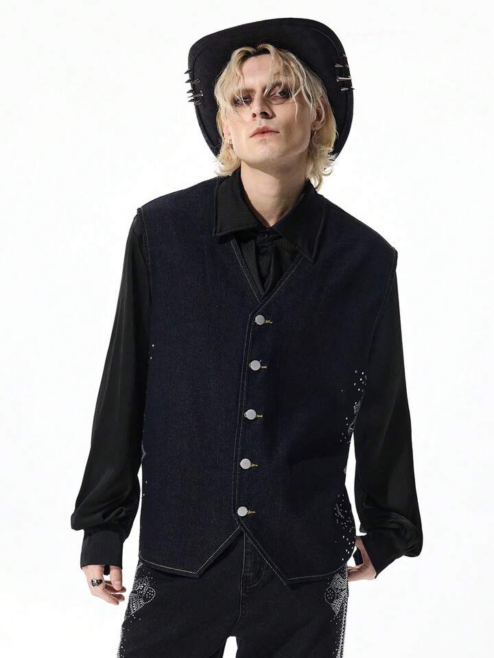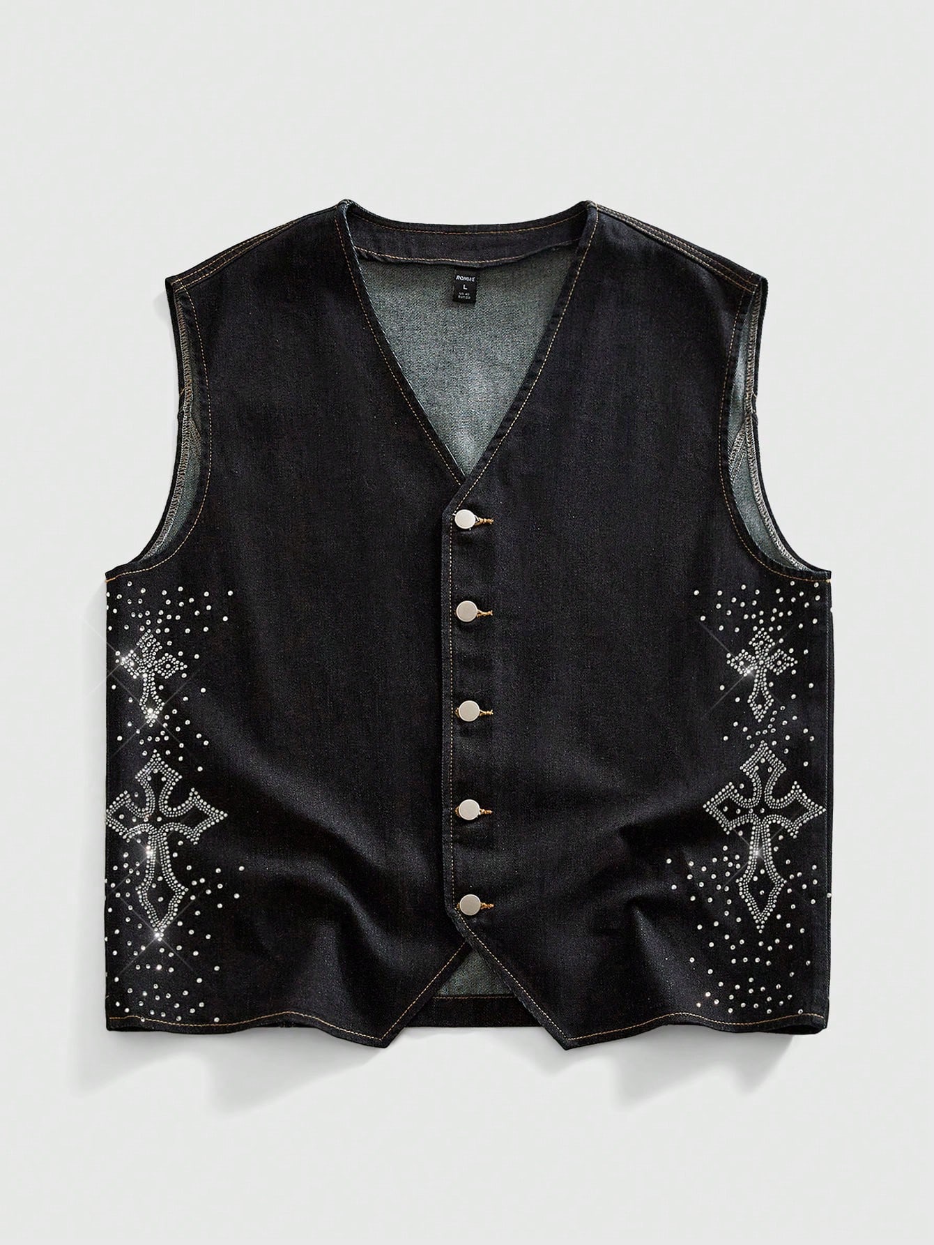 Street Life Herren Denim Weste mit Kreuz-Strass-Dekor, modisch und vielseitig einsetzbar