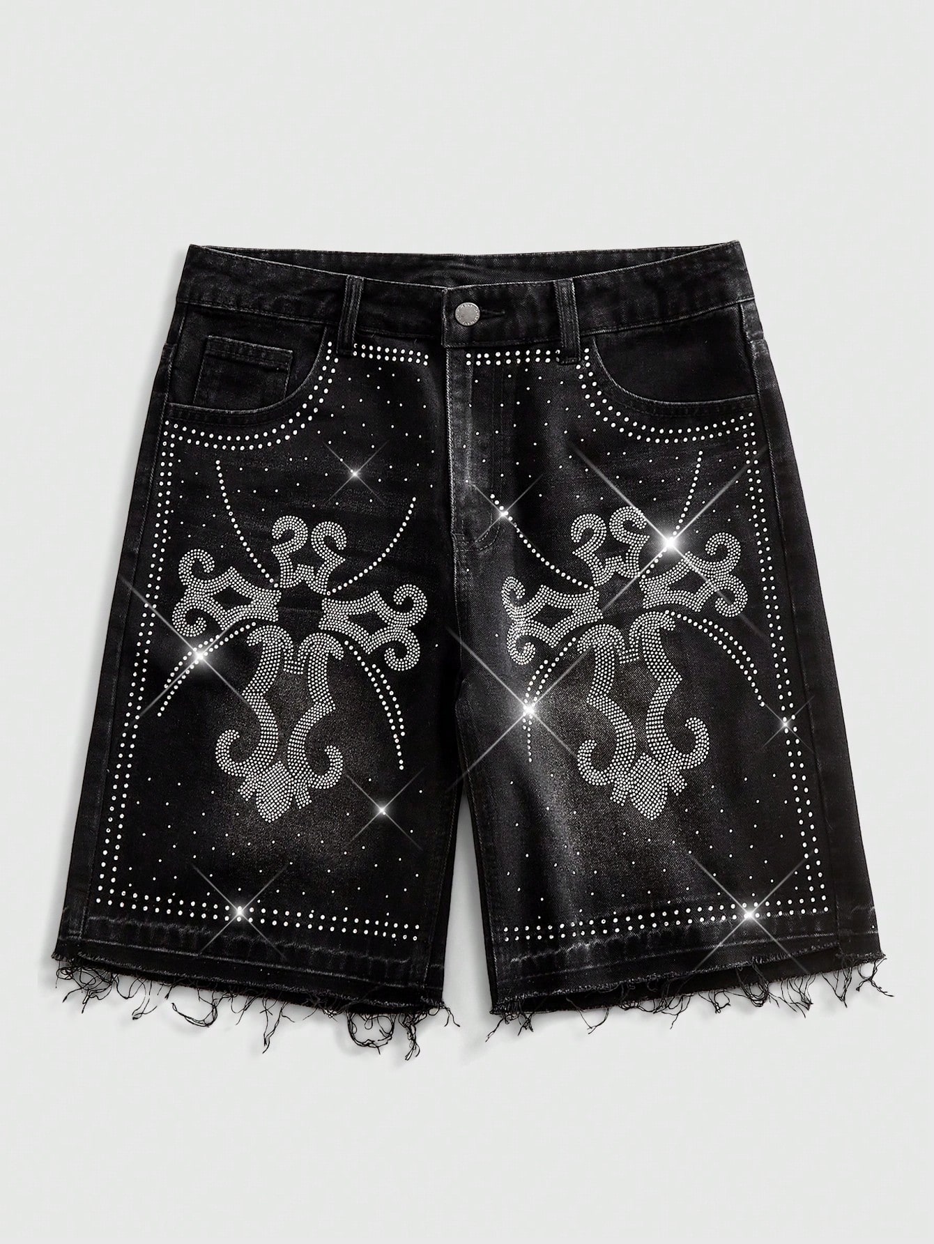 Street Life Herren Kreuz-Strass-Muster ausgefranste Taschen Lässig vielseitig tragbare Denim-Shorts für den täglichen Gebrauch