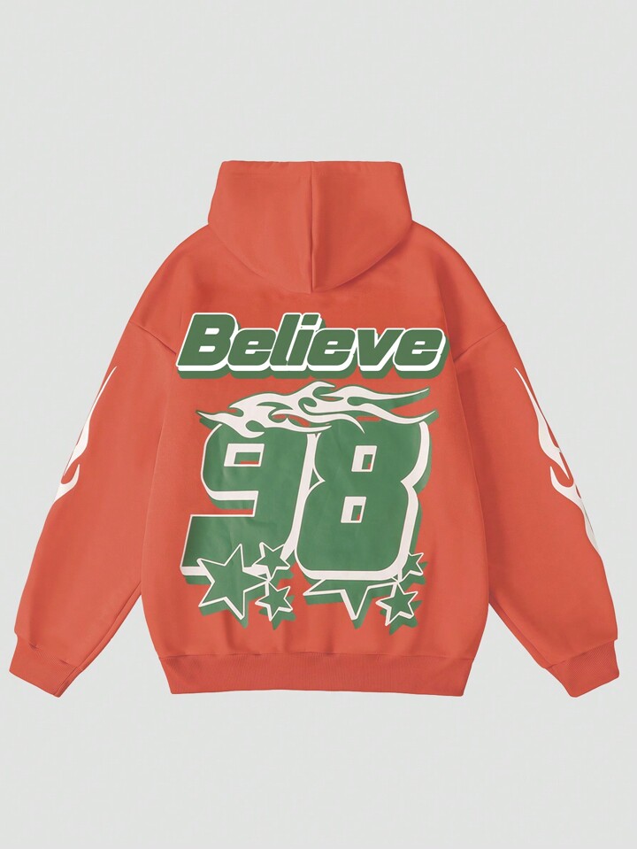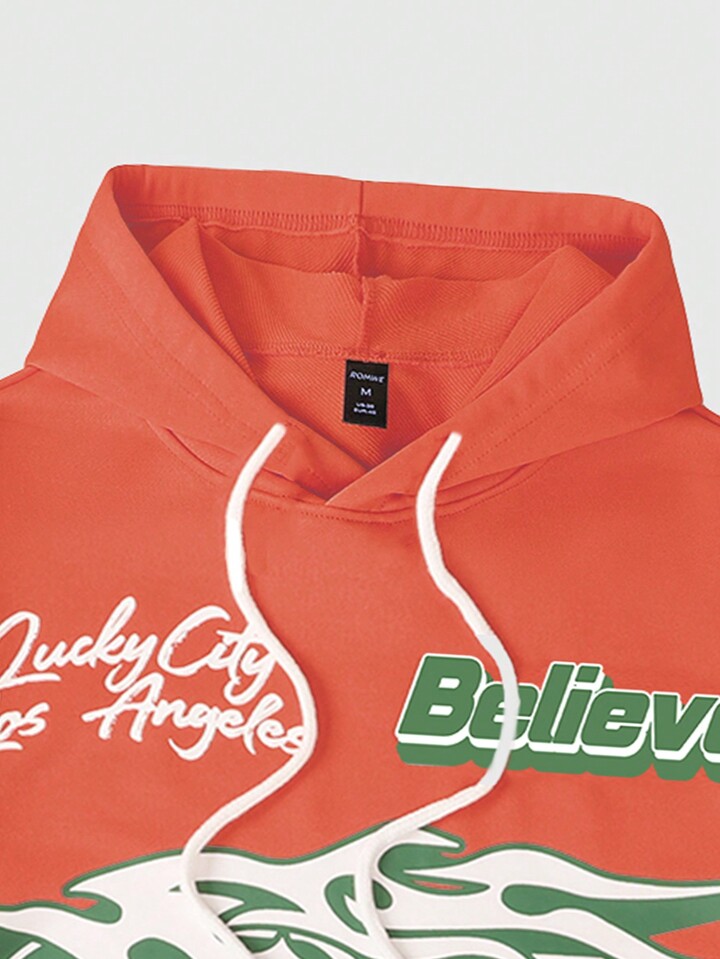 Street Life Herren Langarm Pullover mit Ziffer Muster und Kapuze mit Kordelzug, Streetwear Vintage Stil
