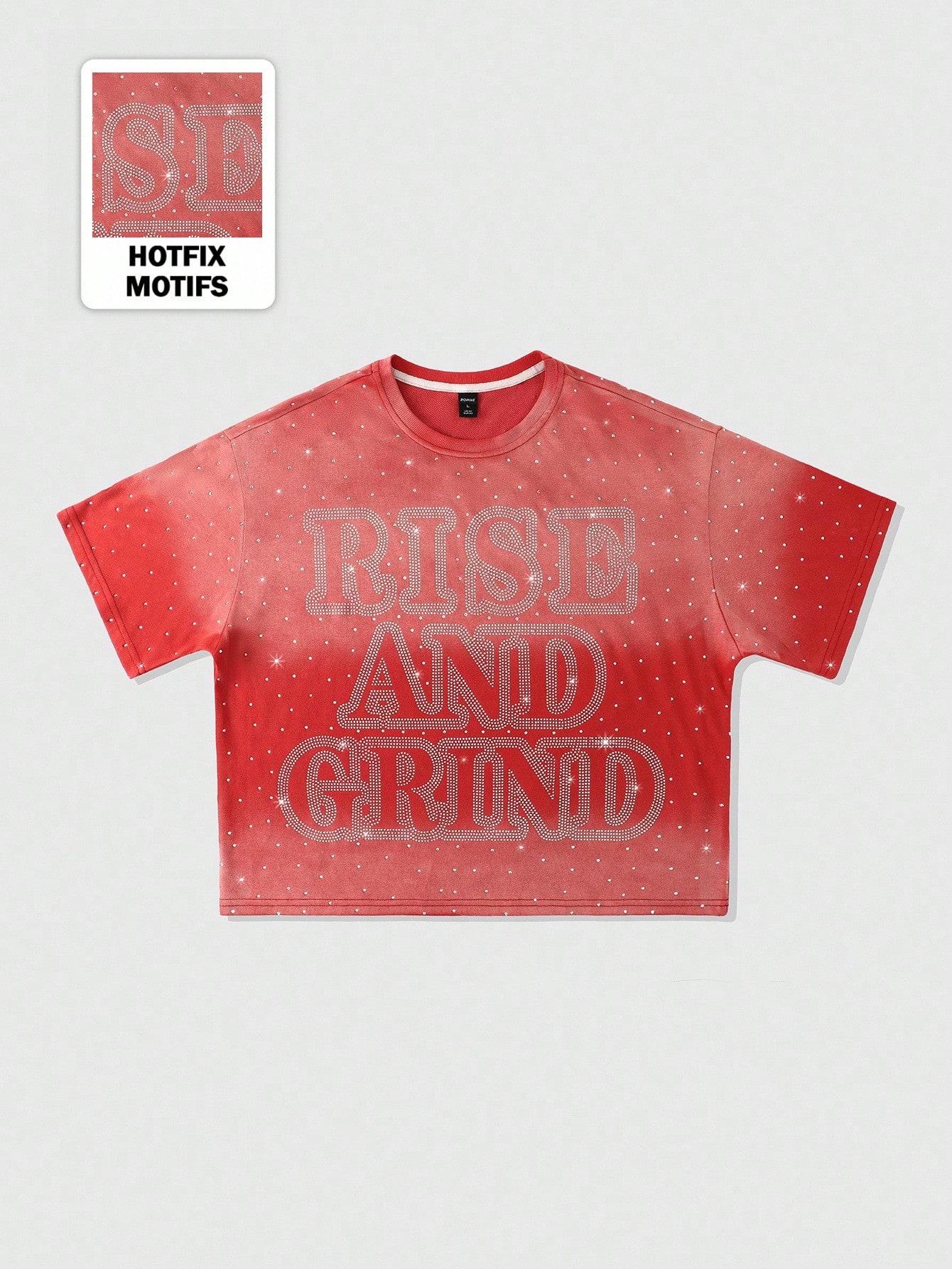 Street Life Herren Distressed T-Shirt mit Strass-Verzierung, kurze Ärmel, locker geschnitten