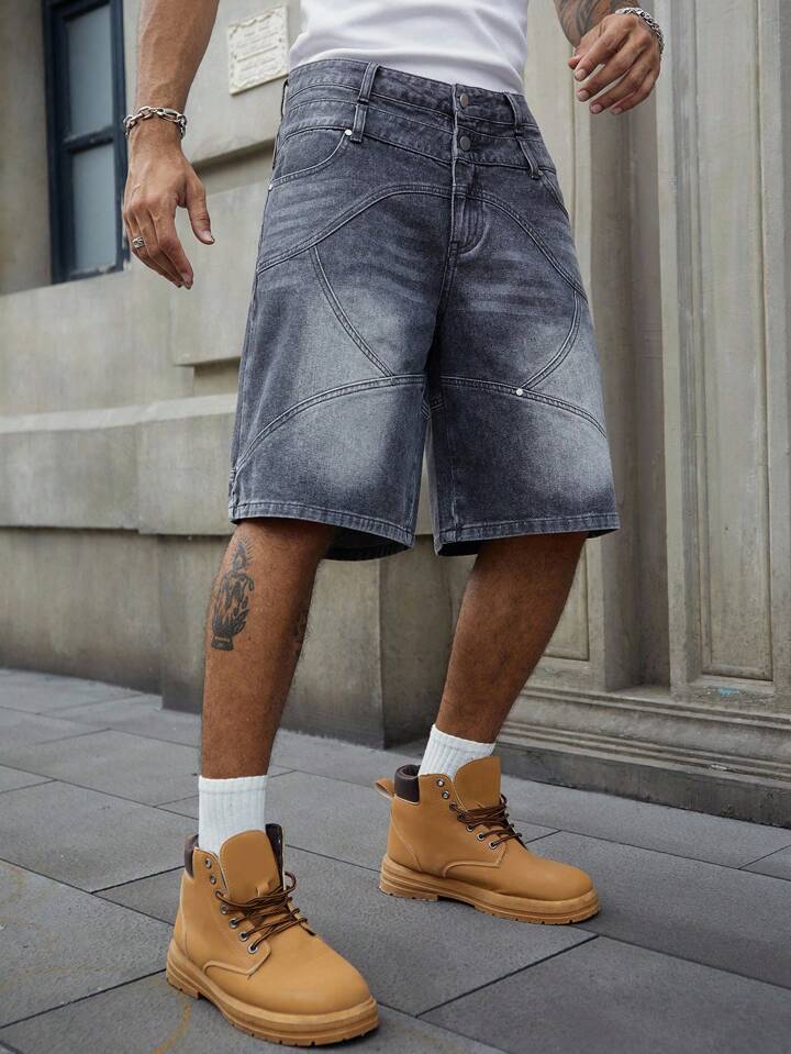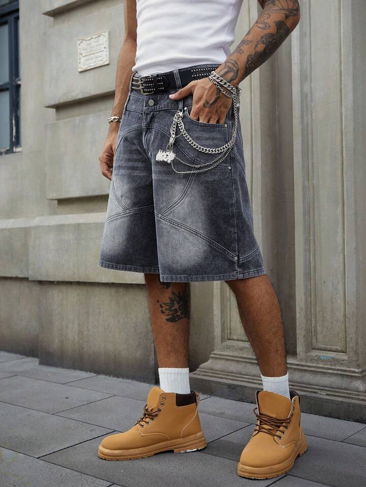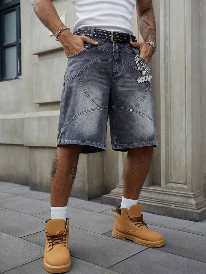 Street Life Herren Denim Shorts mit locker sitzender Doppel-Taillenbandkonstruktion