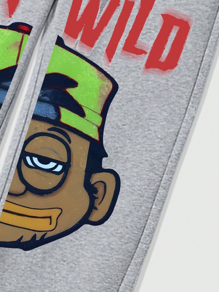Street Life Herren Jogginghose mit Kordelzug in der Taille, lockerem weiten Bein und Cartoon-Buchstaben-Muster mit Tasche