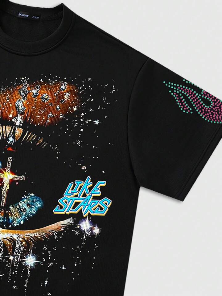 Street Life Herren Bedrucktes, locker sitzendes T-Shirt mit abfallenden Schultern