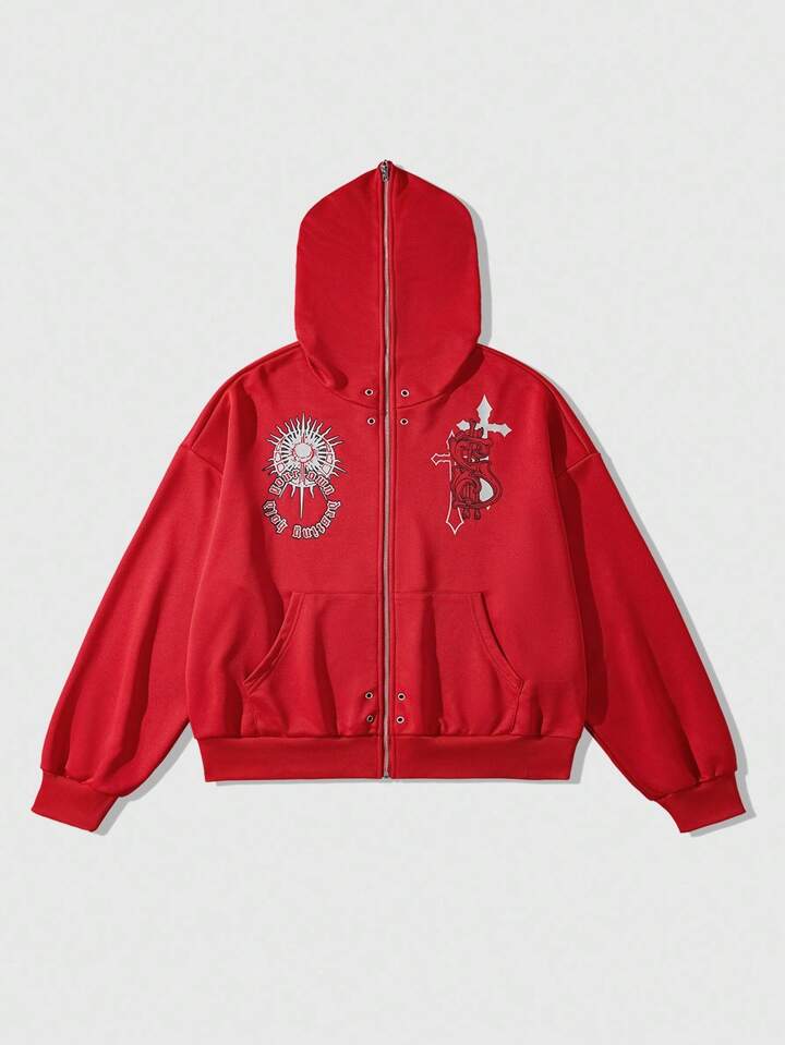 Street Life Herren Ösen-Design Kreuz-Muster Reißverschluss Loose Hoodie Sweatshirt, Herbst
