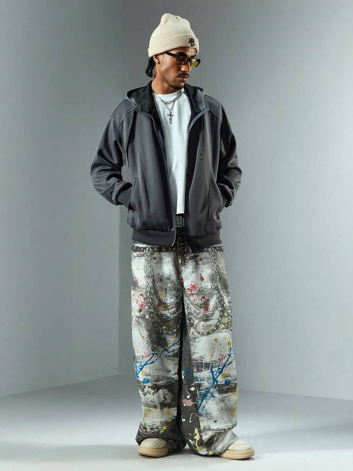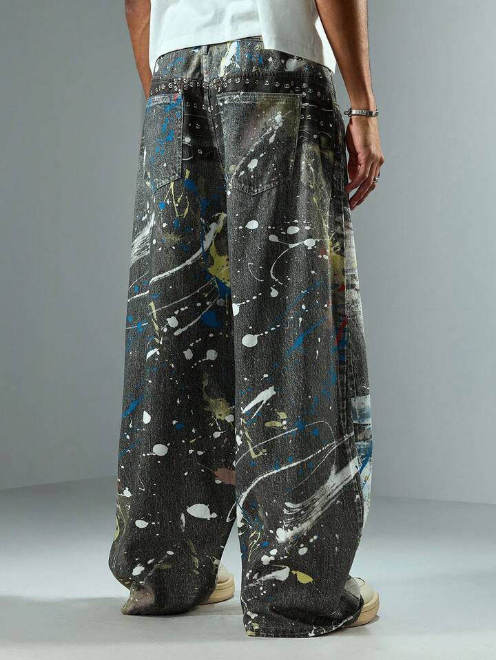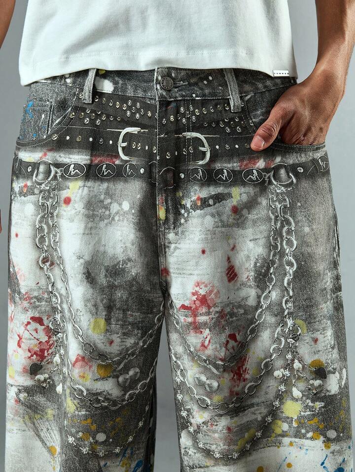 Street Life Herren Mode Digital bedruckte Jeans mit gebogener Beinform