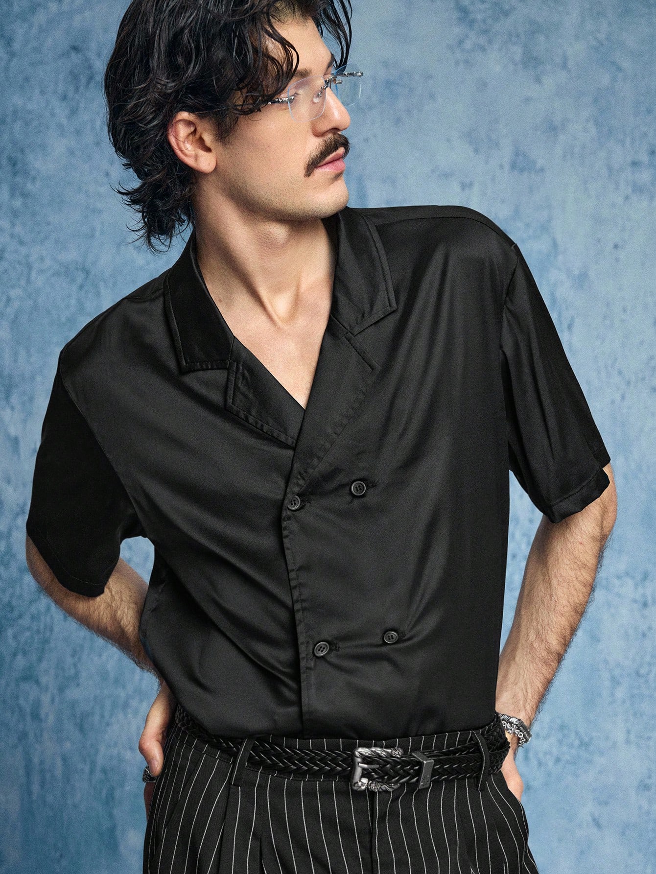 Street Life Herren Mode Doppelreiher Kragen Kurzarm Hemd