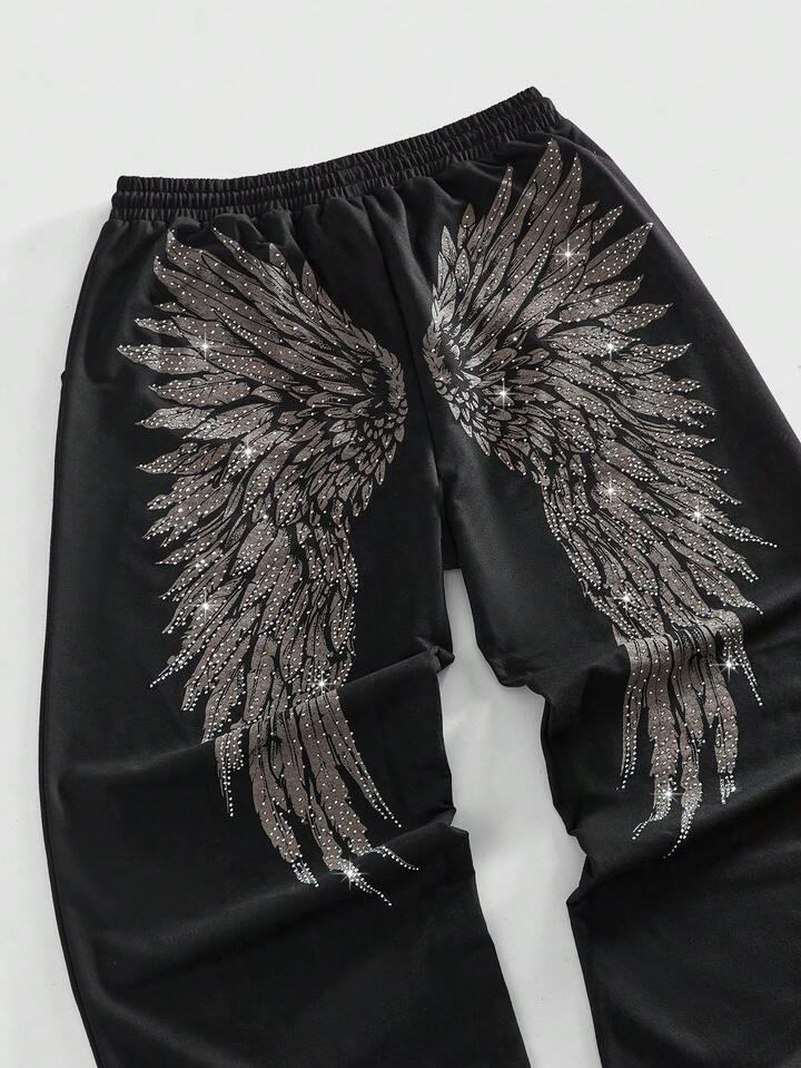 Street Life Herren Mode Streetwear Lässig Strass Flügel Muster Loose Weite Bein Jogginghose