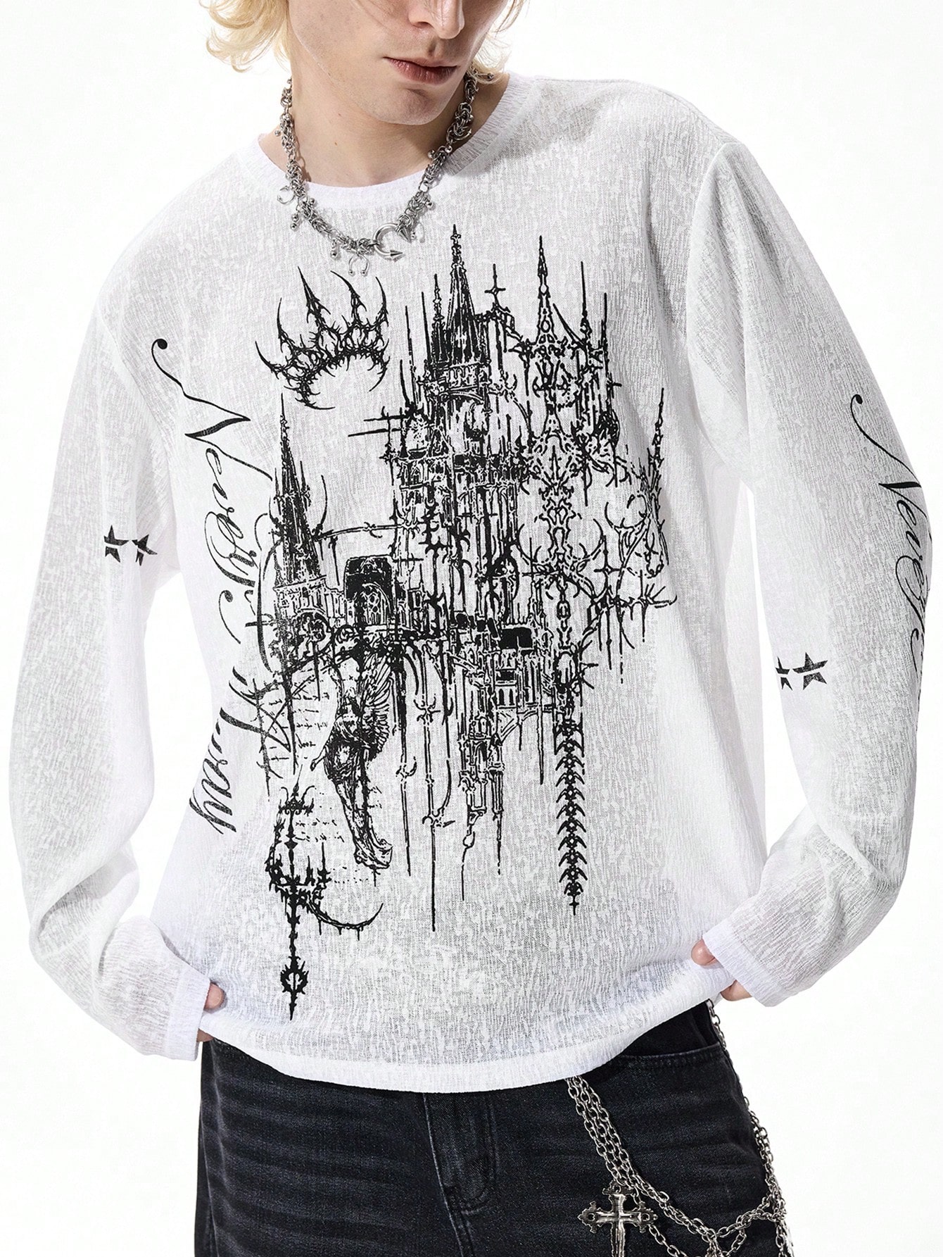 Street Life Herren modisches, lässiges Retro-Muster Langarm-T-Shirt