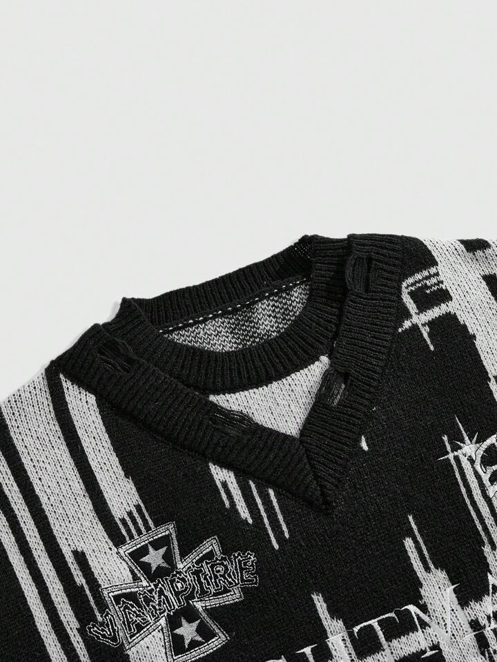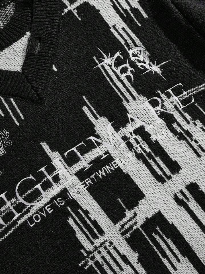 Street Life Herren modischer Jacquard-Strick-Sweater mit doppeltem Kragen, Streetwear, Herbst/Winter