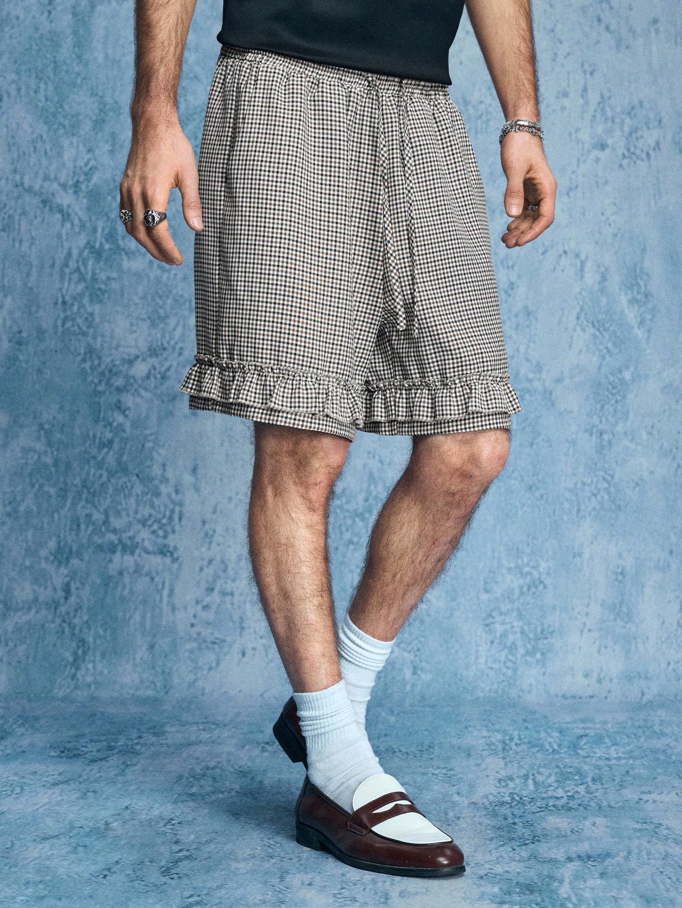Street Life Herren feine karierte Shorts mit Tunnelzug in der Taille, Taschen und Rüschensaum, Lässig