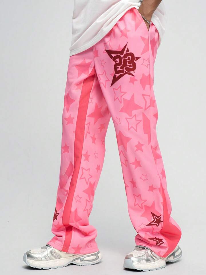 Street Life Herren Jogginghose mit Kontrast-Farbblöcken und fünfzackigem Stern Patchwork, Straßenmode Retro Stil