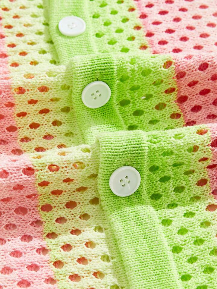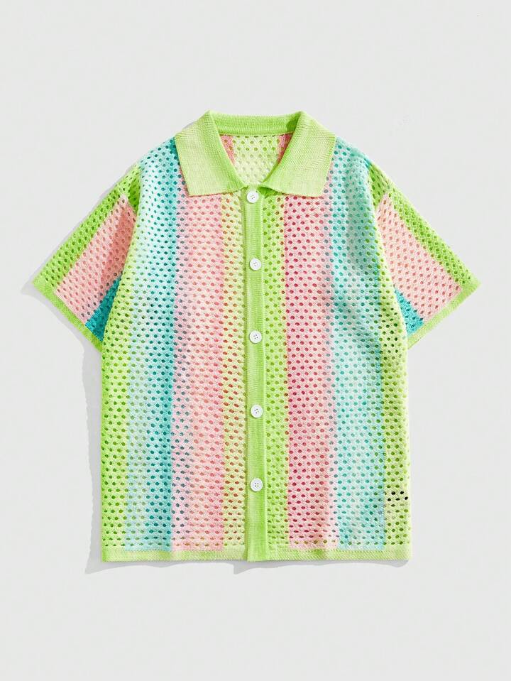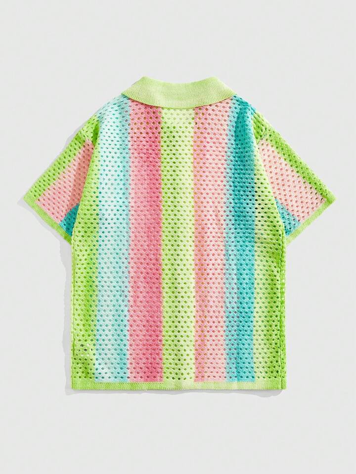 Street Life Herren Lässig Kurzarm Top mit Knopfverschluss und Dopamin-Hohlstrick-Design