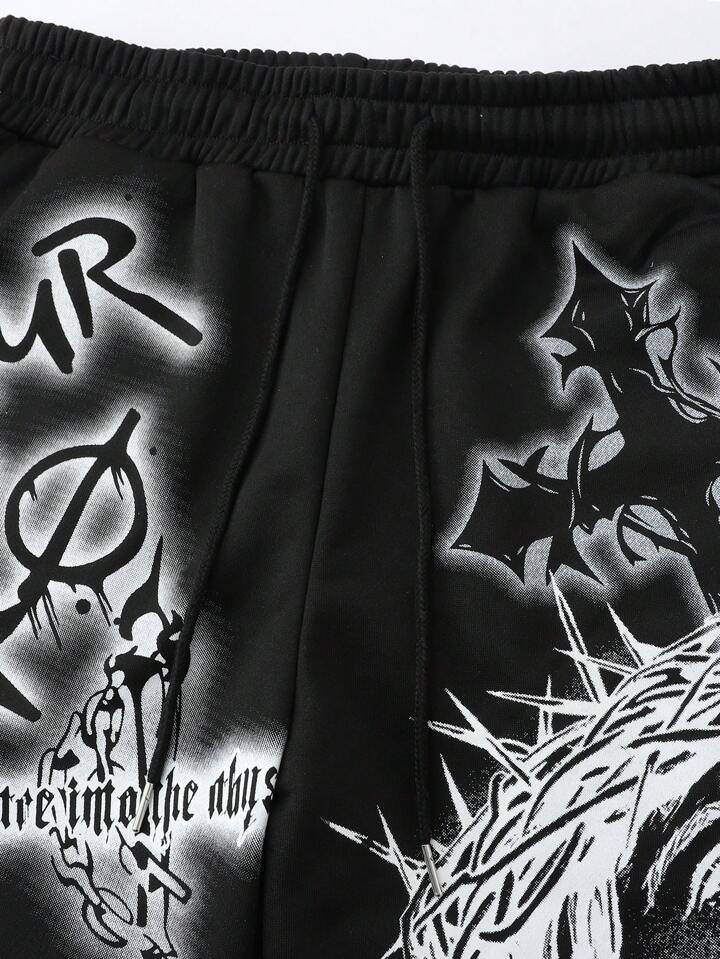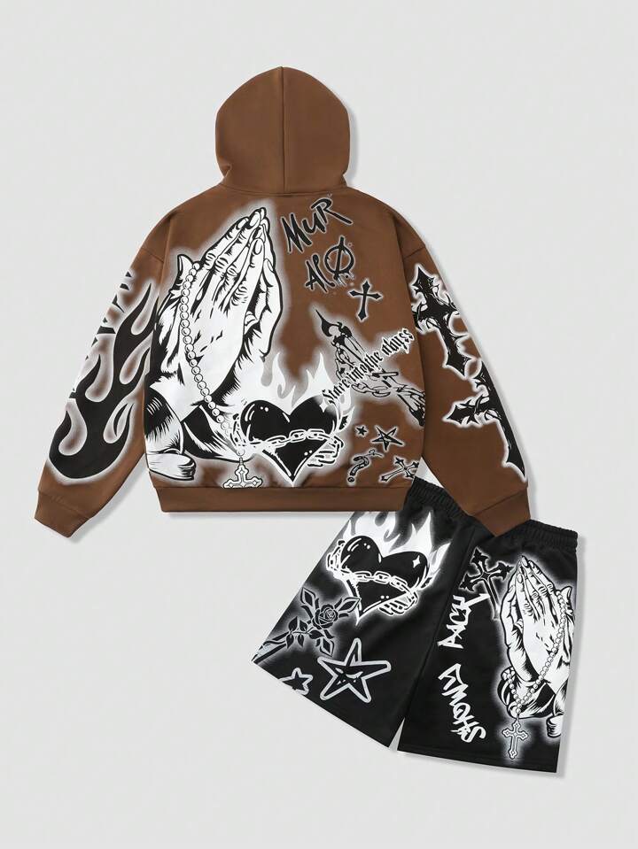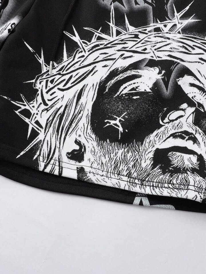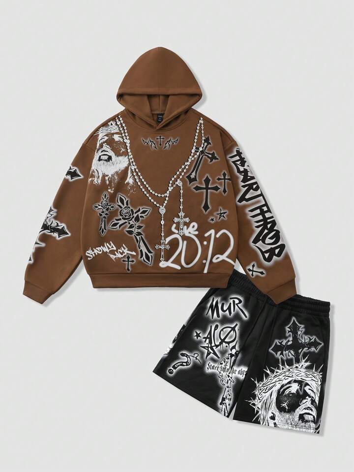 Street Life Herren lustiges Cartoon Portätdruck Sweatshirt Set, Streetwear