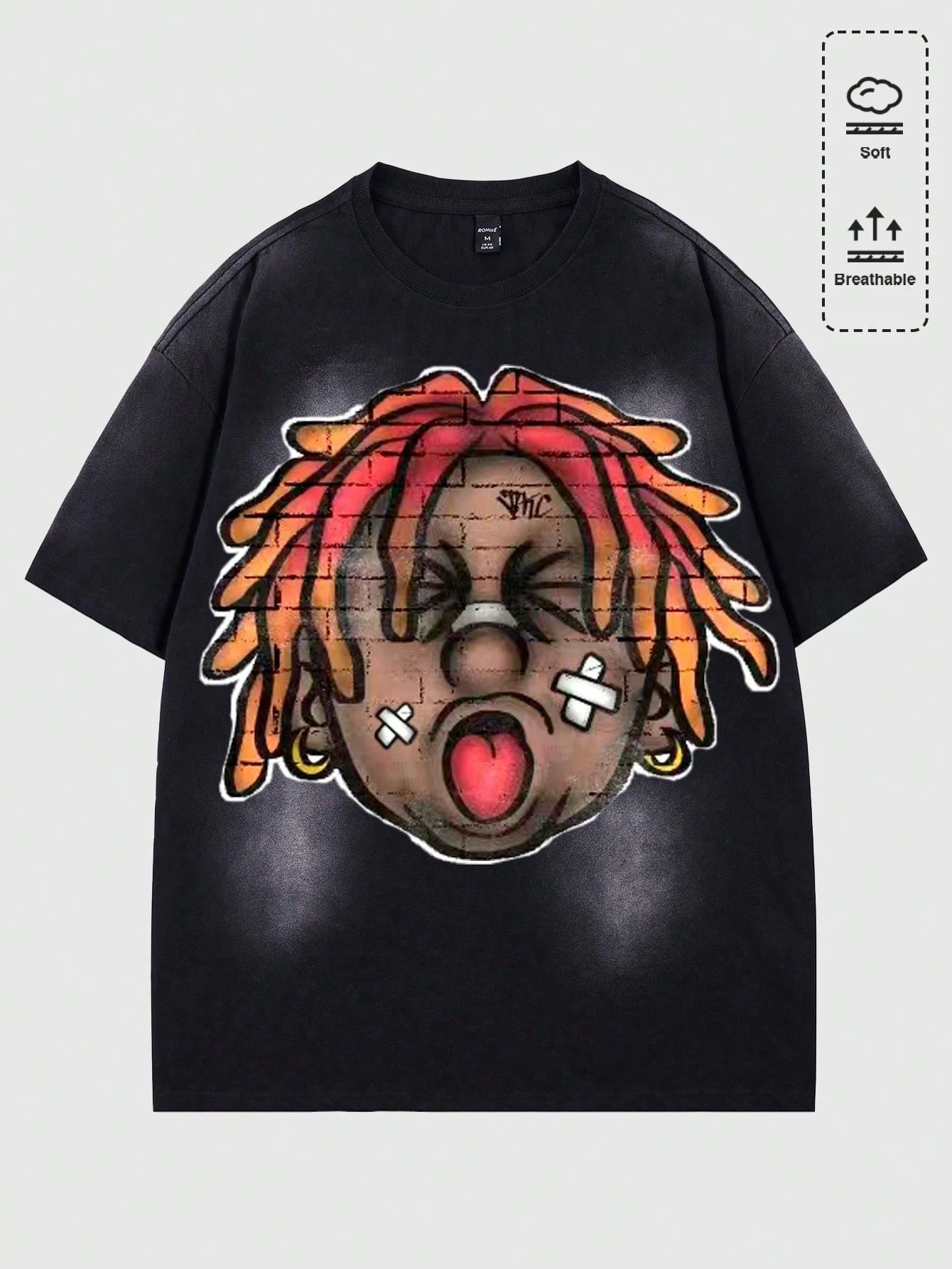 Street Life Herren Lustiges bedrucktes verwaschenenes und abgenutztes Zebra Kurzarm T-Shirt