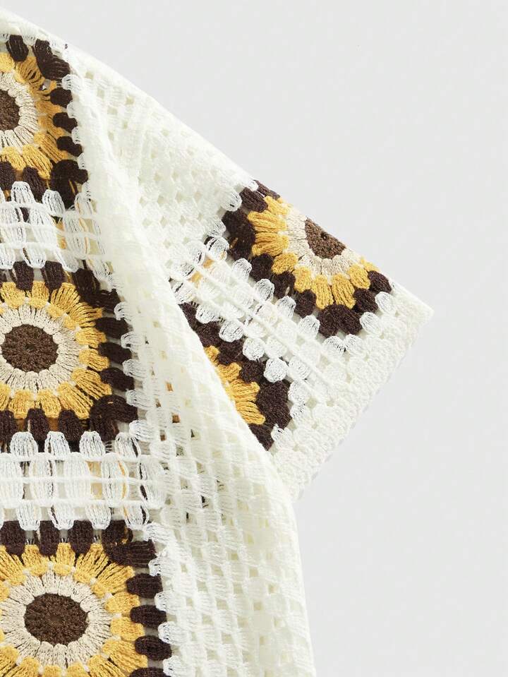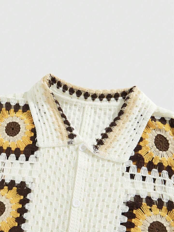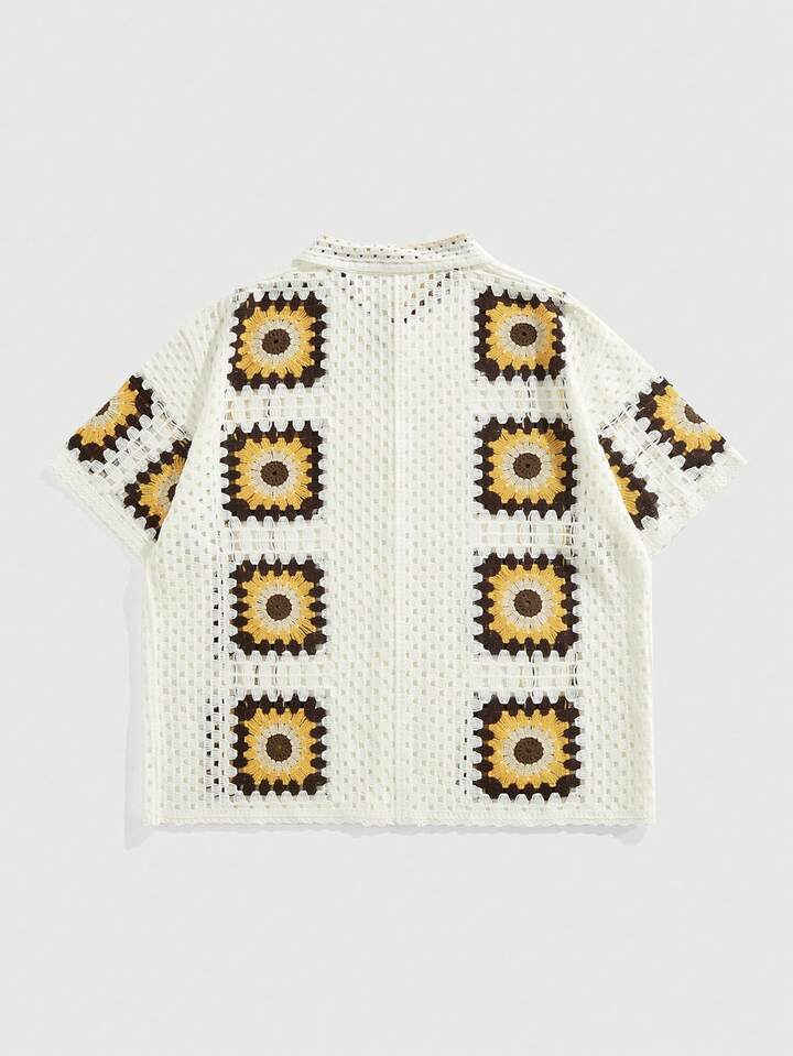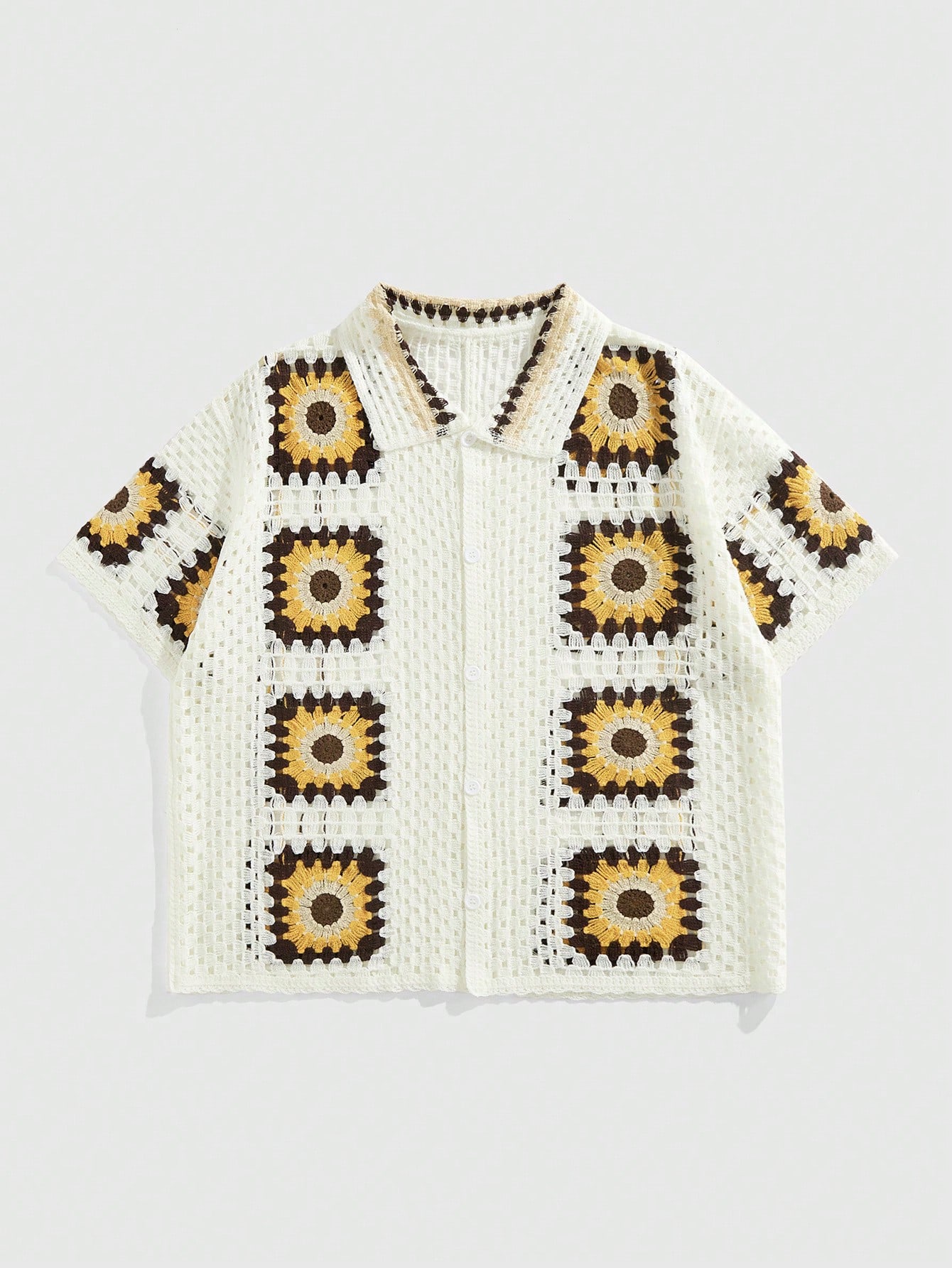 Street Life Herren Einreihiges Strickhemd mit geometrischem Muster und kurzen Ärmeln, Cut Out