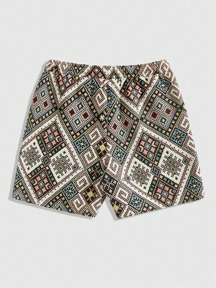 Street Life Herren Geometrisch bedruckte lässige weite Shorts mit Tasche
