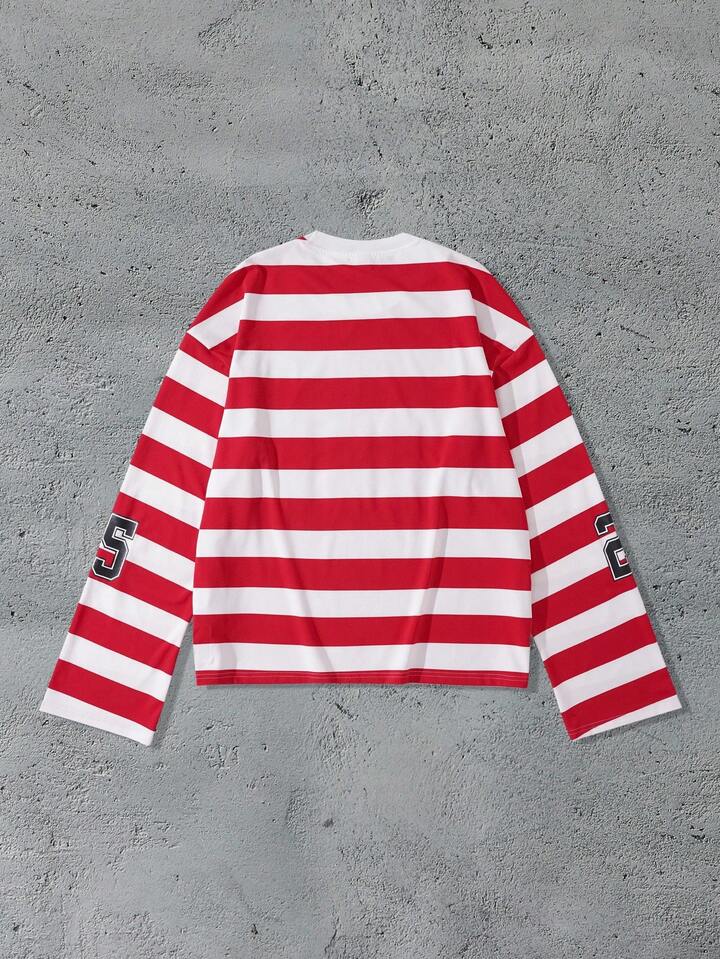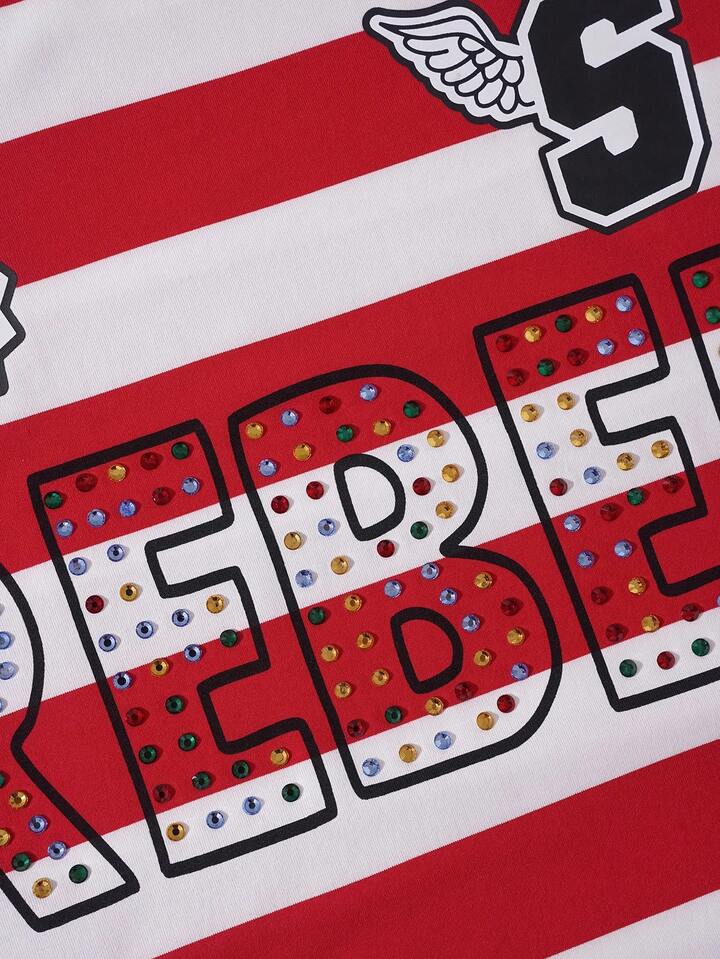 Street Life Herren Glitzer Diamant verziertes gestreiftes Langarm T-Shirt, locker geschnittener Crop-Fit, für den Herbst