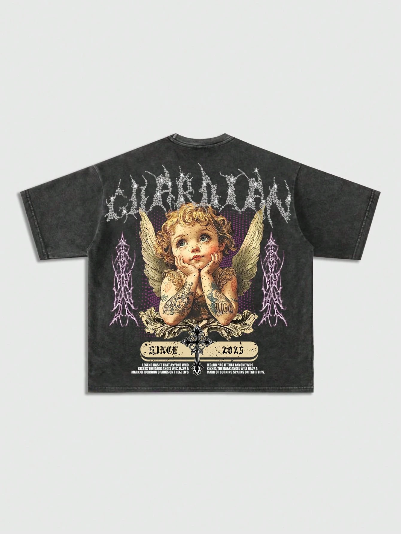 Street Life Herren Bedrucktes Kurzarm T-Shirt im Used-Look, locker geschnittener Crop-Stil