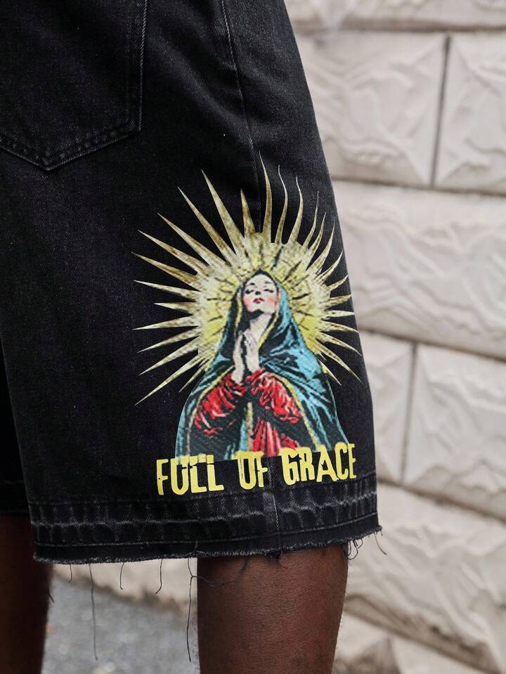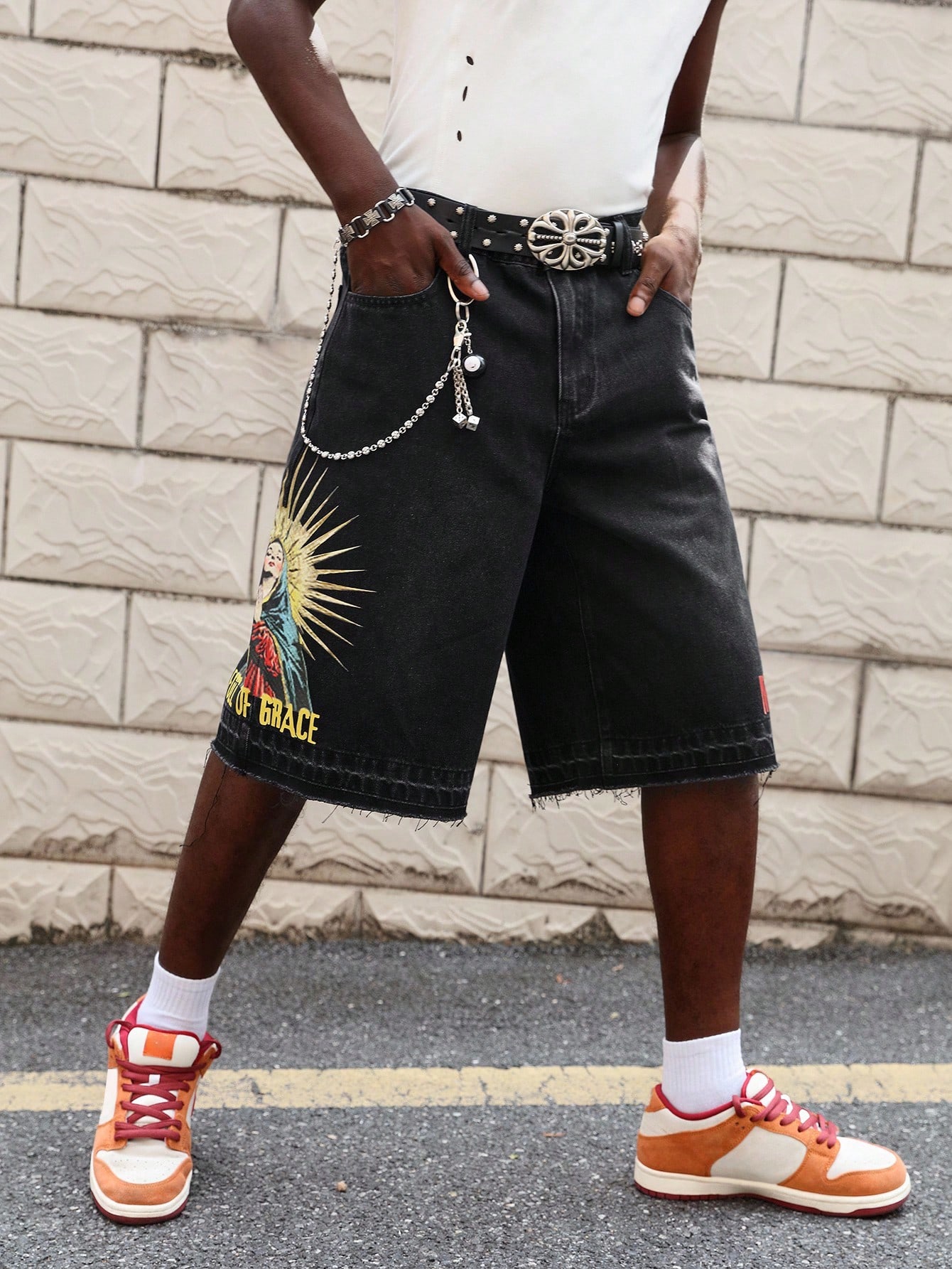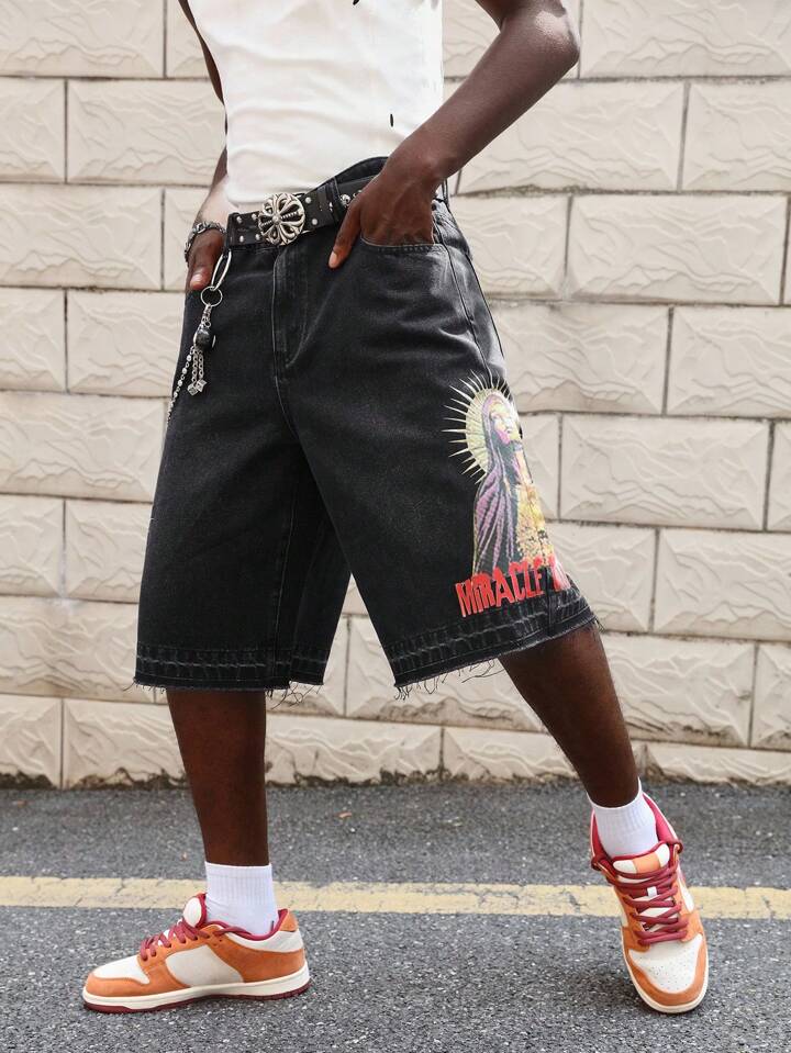 Street Life Herren Gothic Grafik Muster Taschen Lässig Jeans Shorts, Halloween