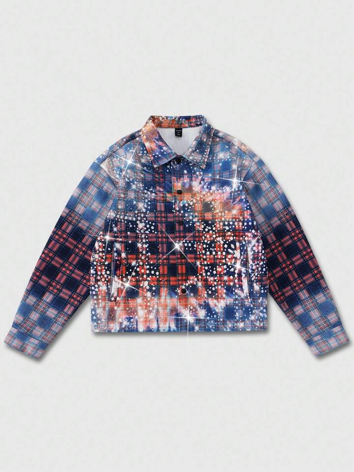Street Life Herren Jacke im Karomuster mit Farbverlauf und Strass-Effekt, Herbst/Winter