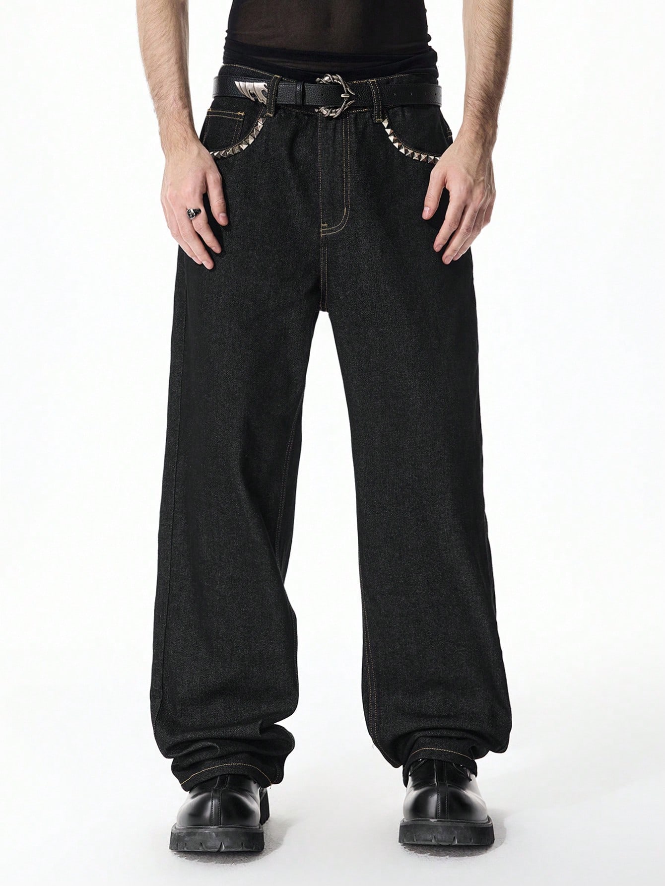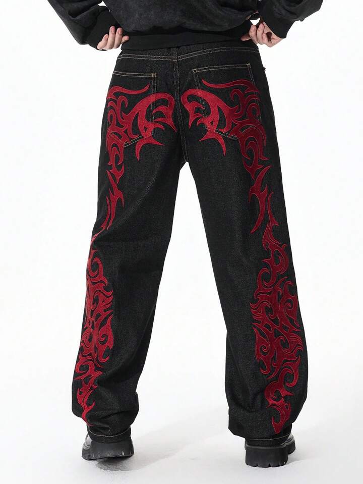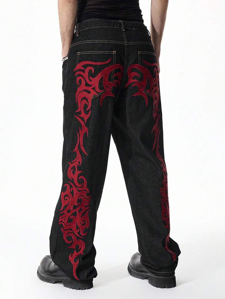 Street Life Herren Grafik Muster Tasche Lässig Jeans, Straßenmode