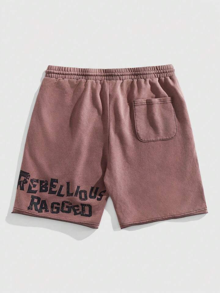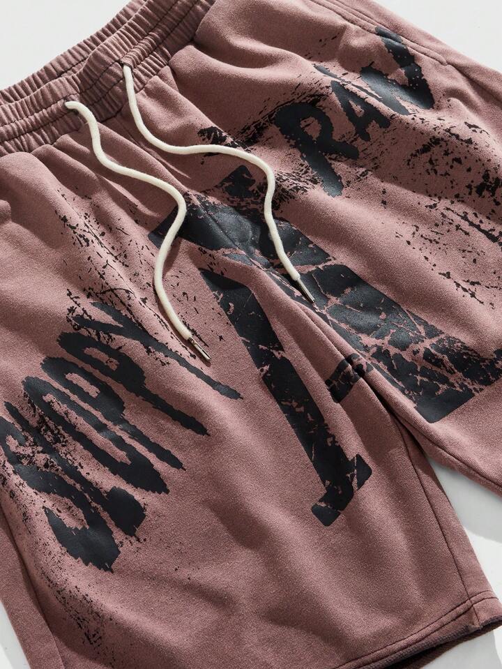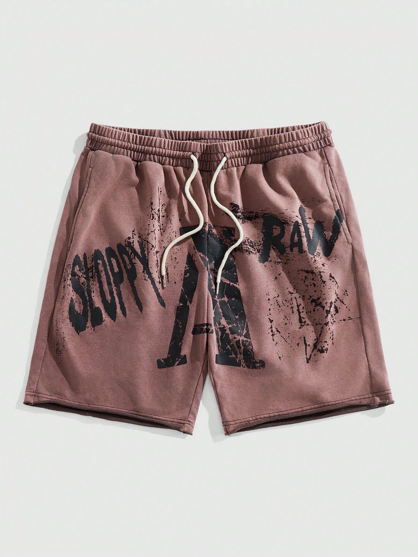 Street Life Herren Shorts mit Ziehbund, Schriftzug-Muster und Used-Optik