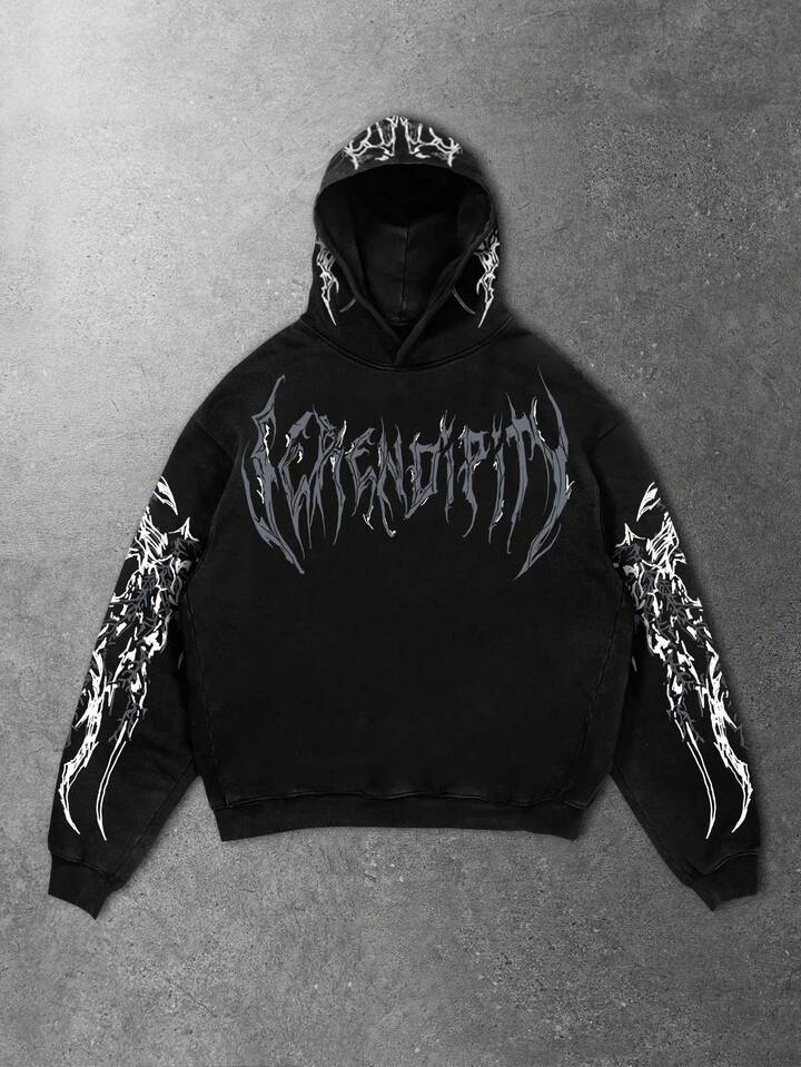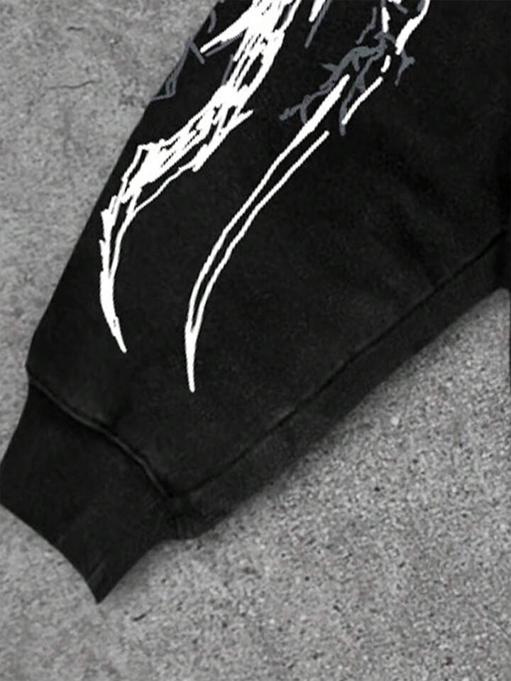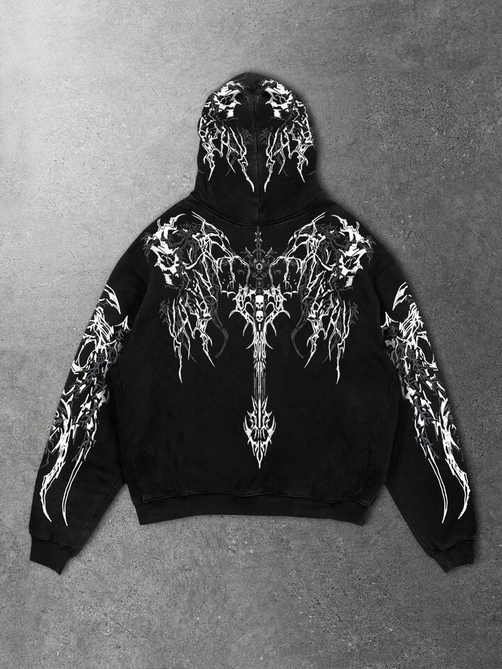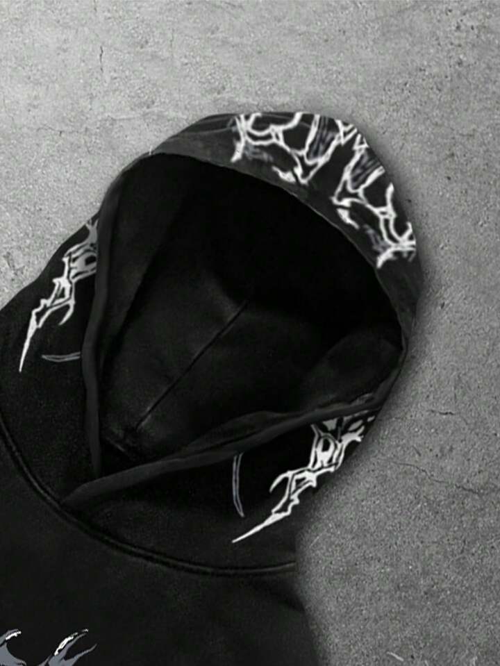 Street Life Herren Halloween Dunkel Metall Punk Stil Streetwear Loose Fit Totenkopf & Kreuz Muster Hoodie Sweatshirt