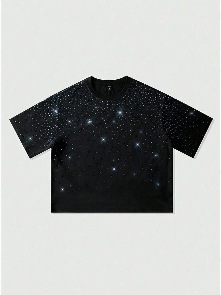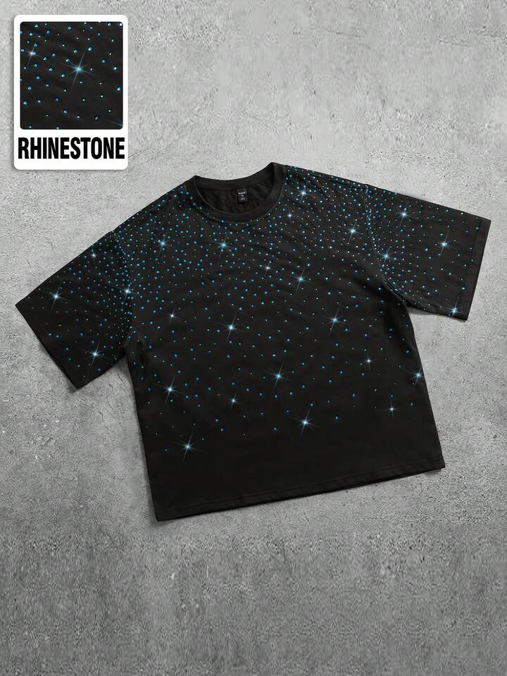 Street Life Herren Oversize Farbverlauf Glitzer Diamant Loose T-Shirt