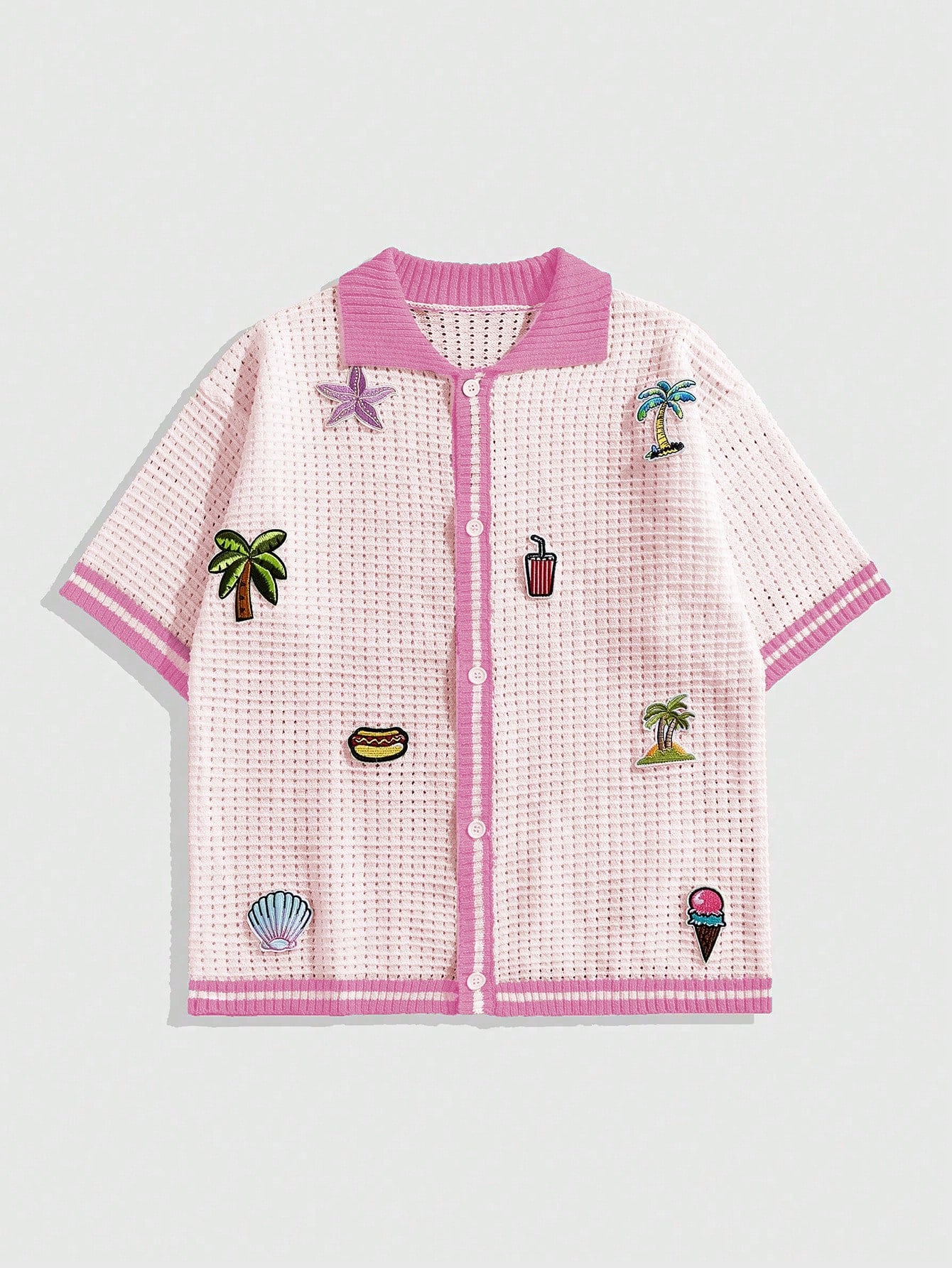 Street Life Herren Urlaubs Lässig Pullover mit kontrastfarbigem Saum und verzierter Stickerei