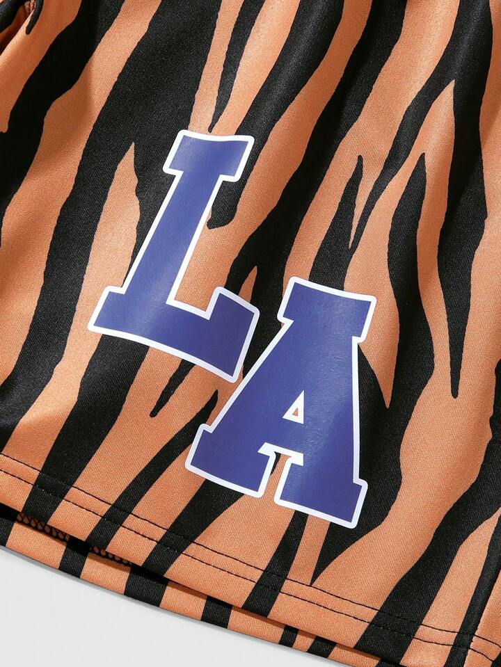 Street Life Herren Freizeit Zebra Muster Und Buchstabendruck Shorts Mit Kordelzug-taille, Sommer Geeignet