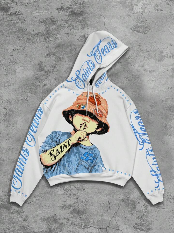 Street Life Herren Kapuzen-Sweatshirt mit Kordelzug, Langarm, lässiges kreatives Porträtmuster, vielseitig einsetzbar