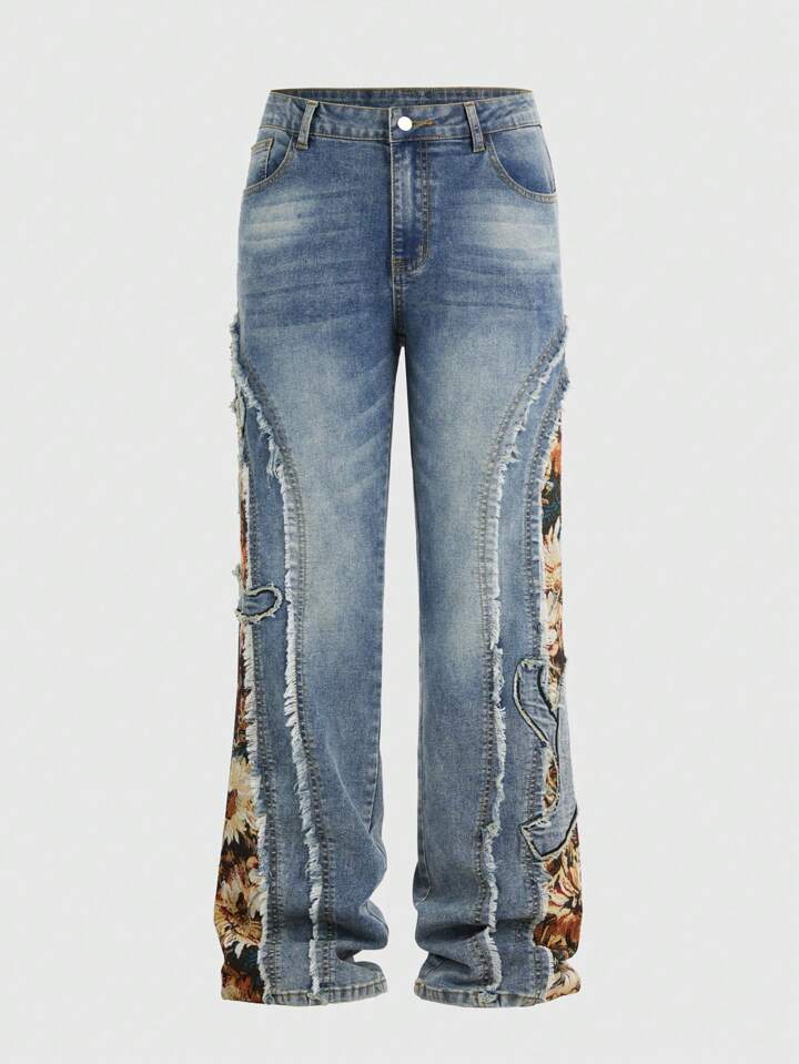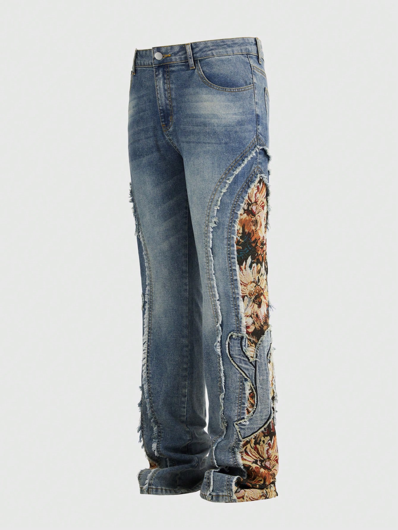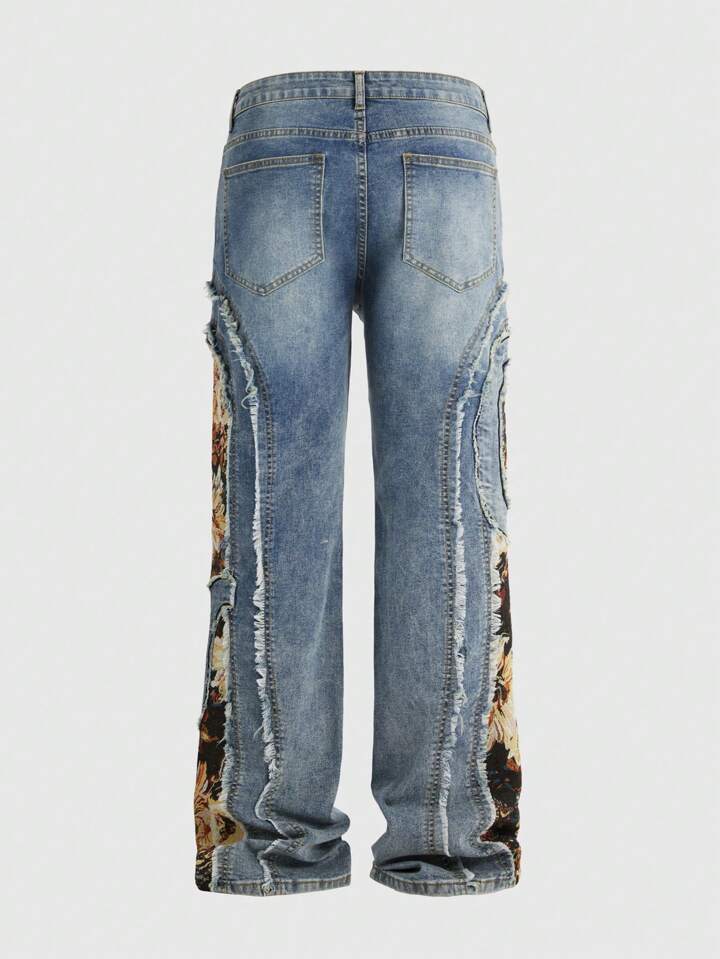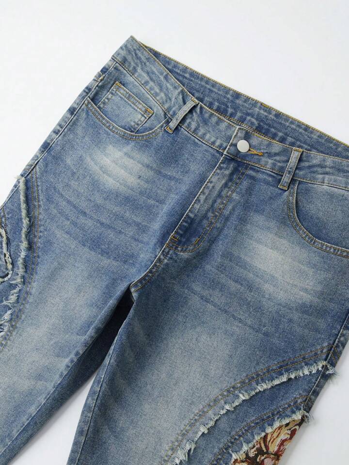 Street Life Herren Jeans mit Jacquard Patchwork und abgenutzten Kanten