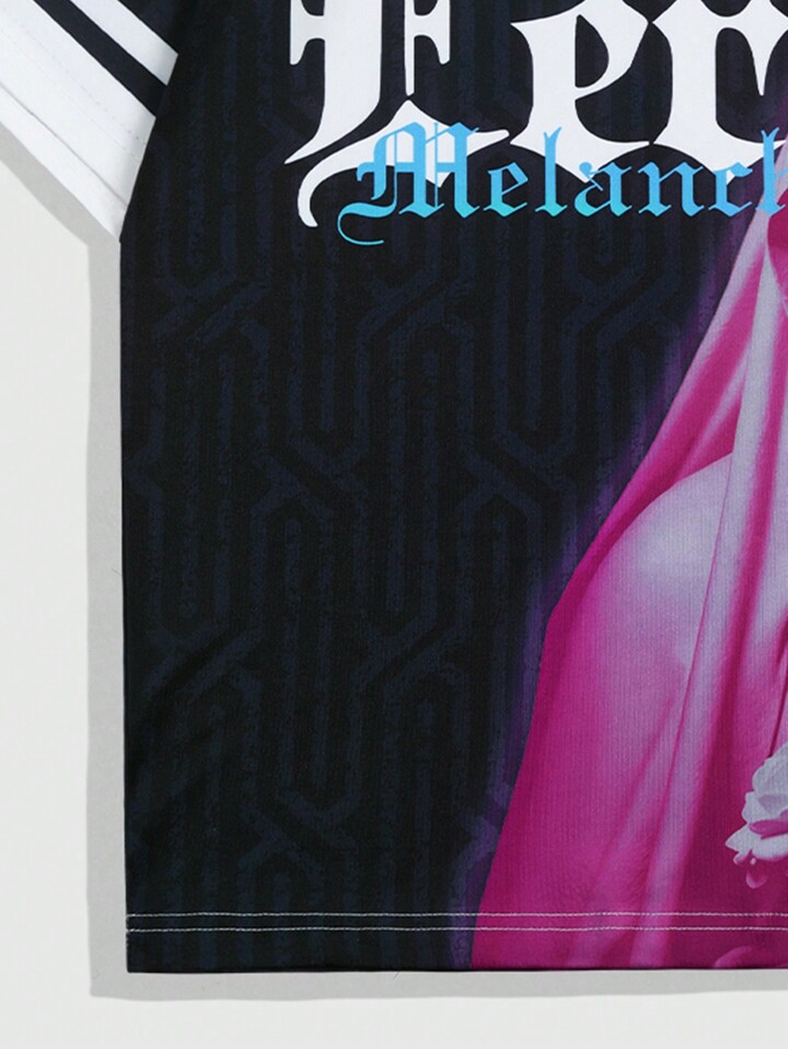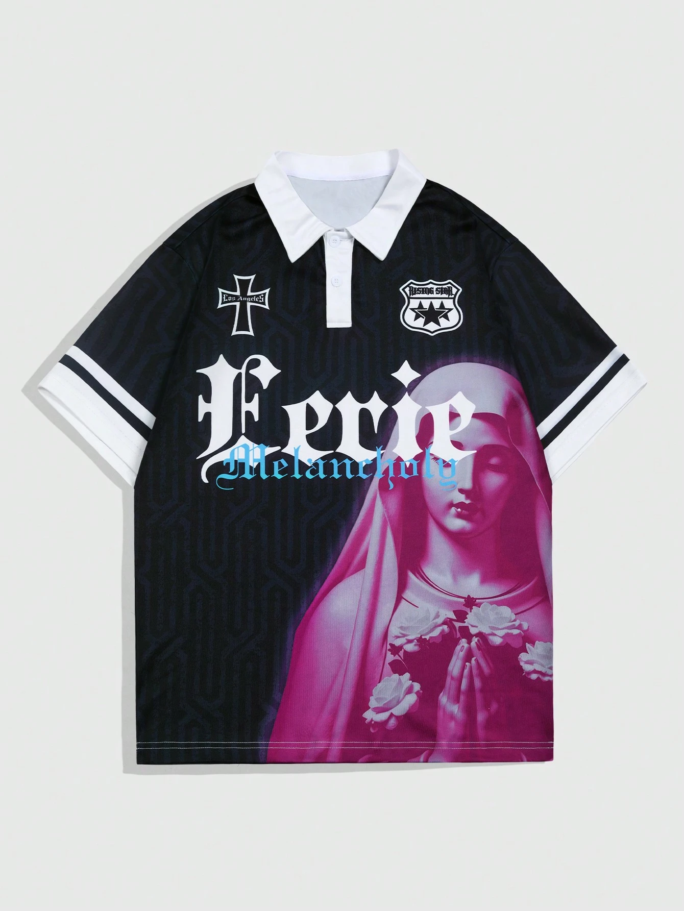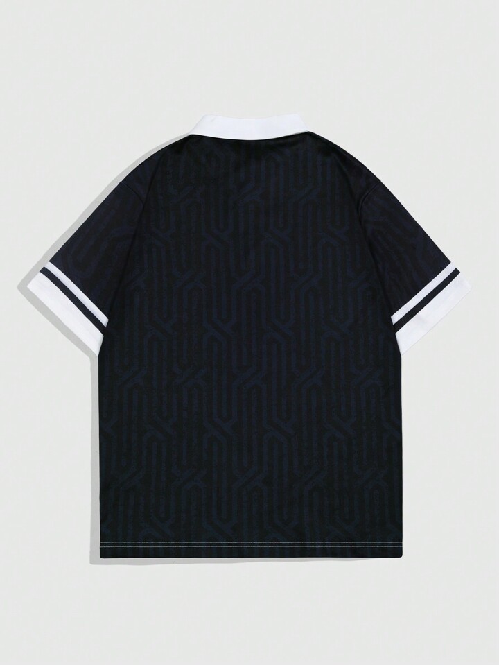 Street Life Herren Vintage Jersey Kurzarm Hemd mit Buchstaben Muster, einfaches lässiges Poloshirt im Fußballjersey Stil