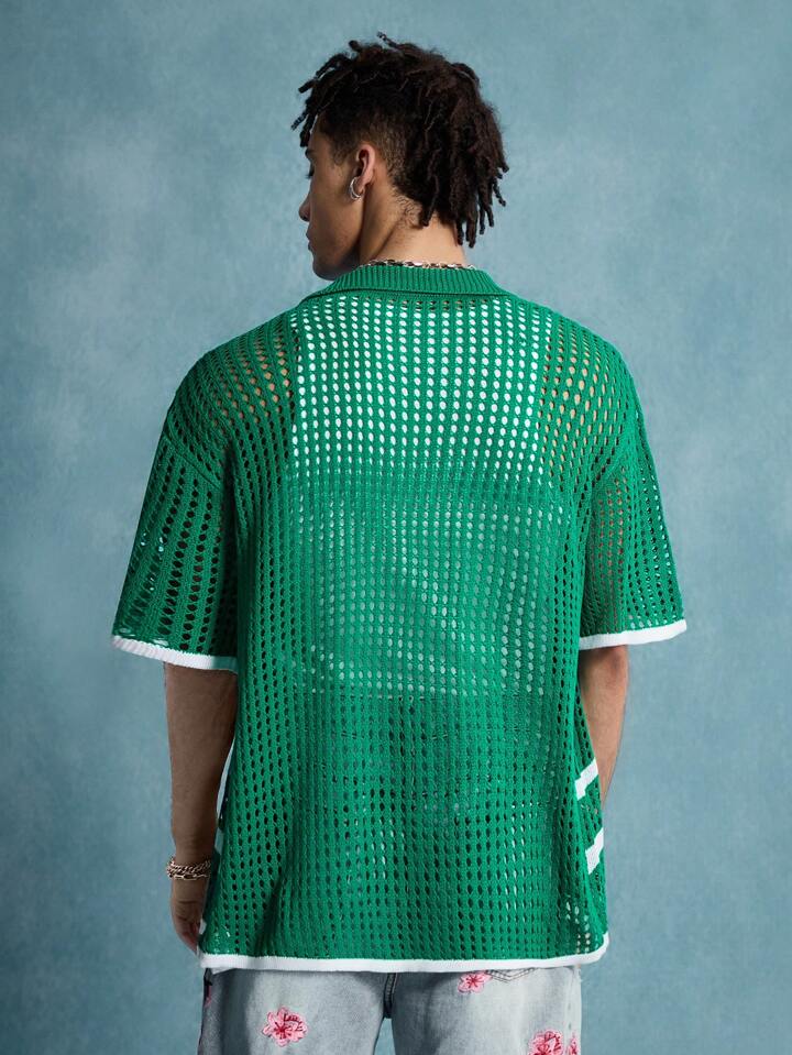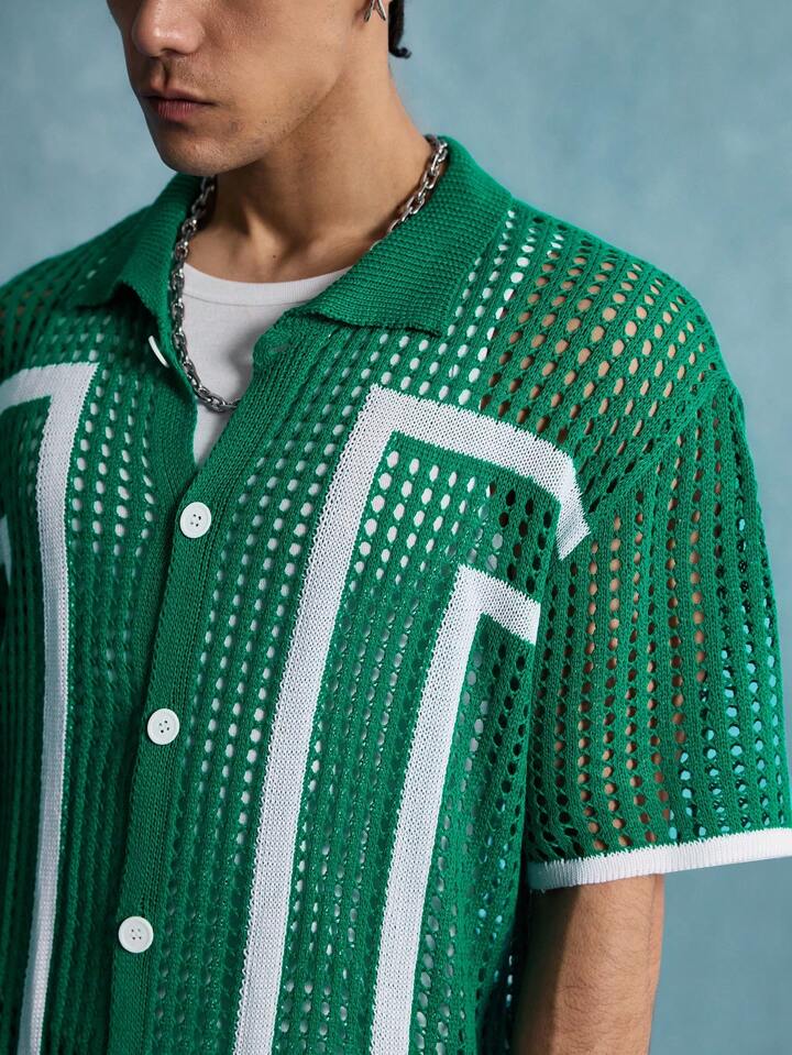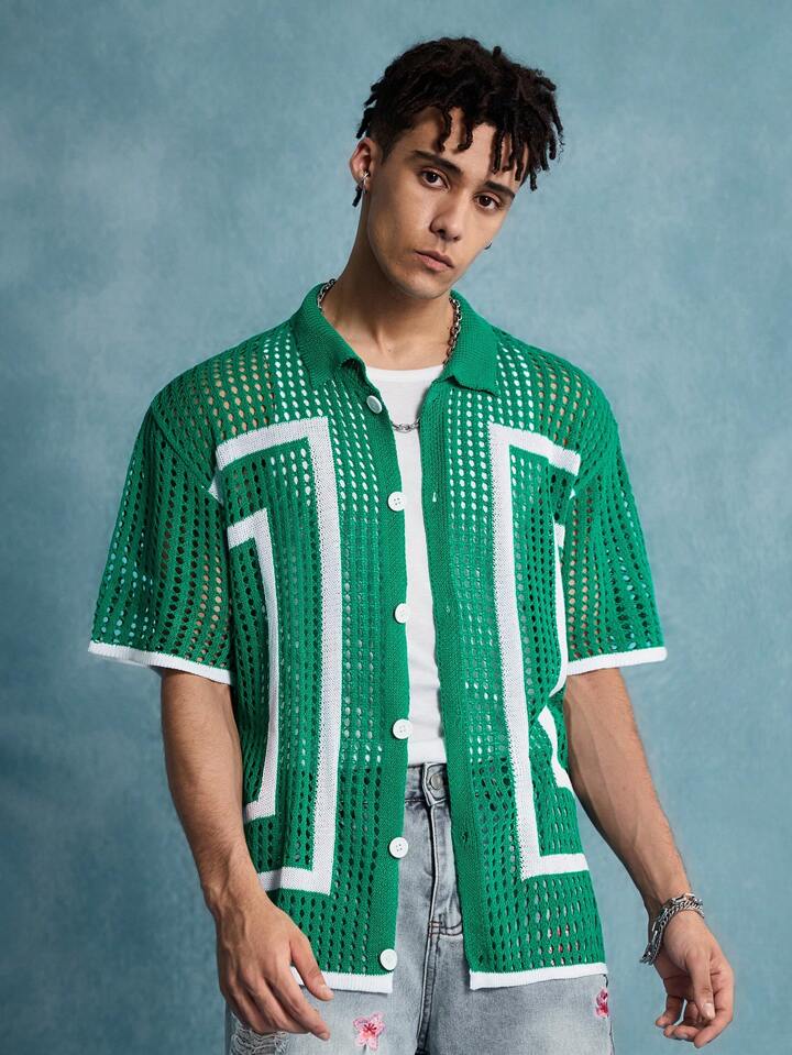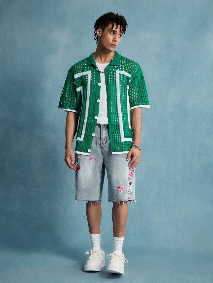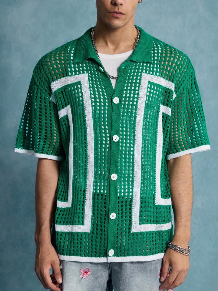 Street Life Herren Cardigan mit offenem Kragen und Lochmuster, Streetwear Mode