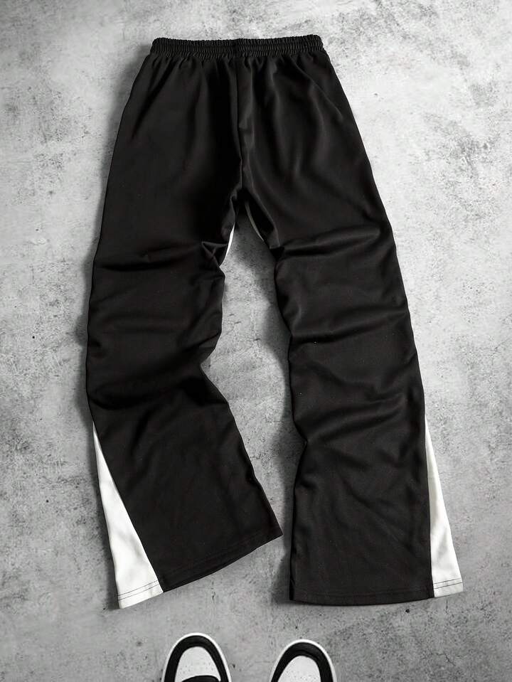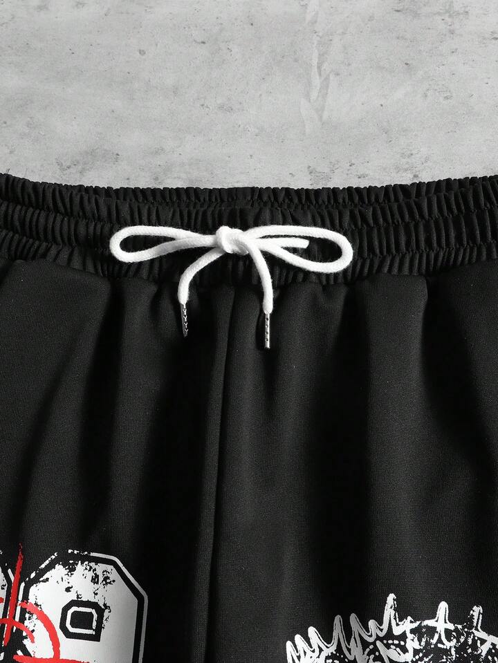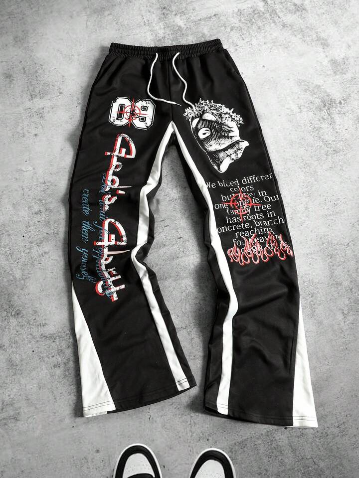 Street Life Herren Mehrschichtiges Patchwork Slogan Muster Kordelzug Taille Weites Bein Streetwear Jogginghose
