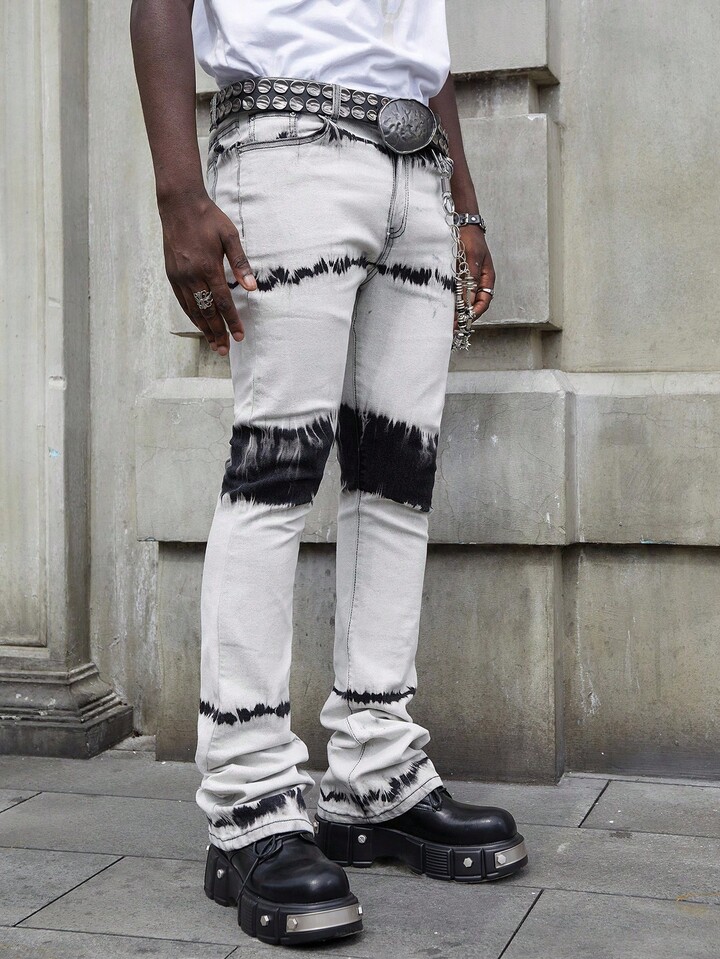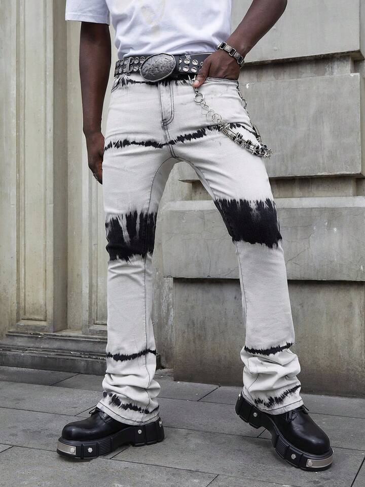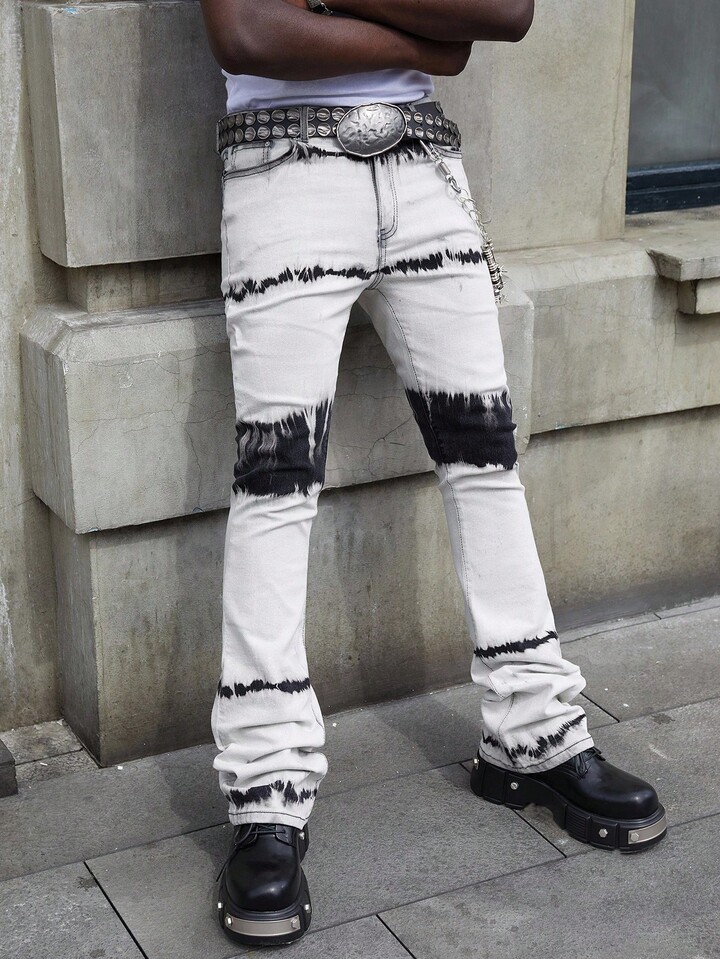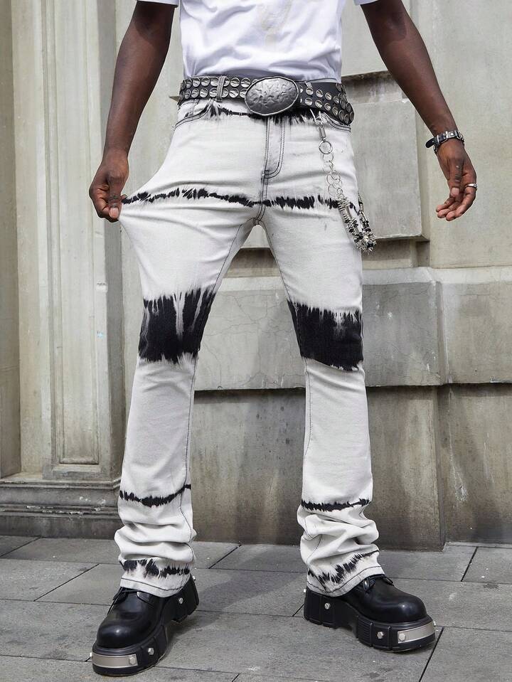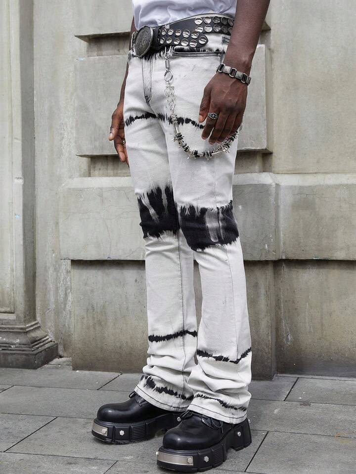 Street Life Herren Mehrschichtige, gewaschene, verwaschene Jeans mit Taschen und Glockenform
