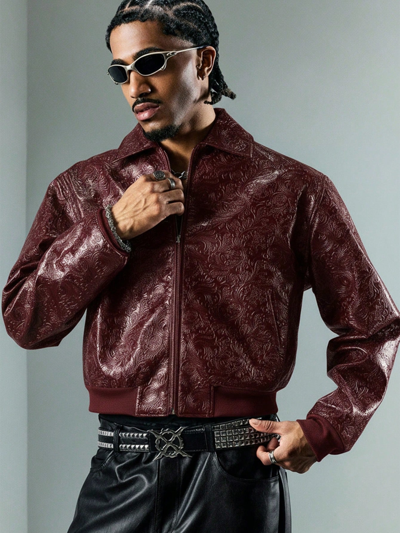 Street Life Herren Lederjacke mit strukturiertem Reißverschluss, modische lässige Oberbekleidung mit Langarm