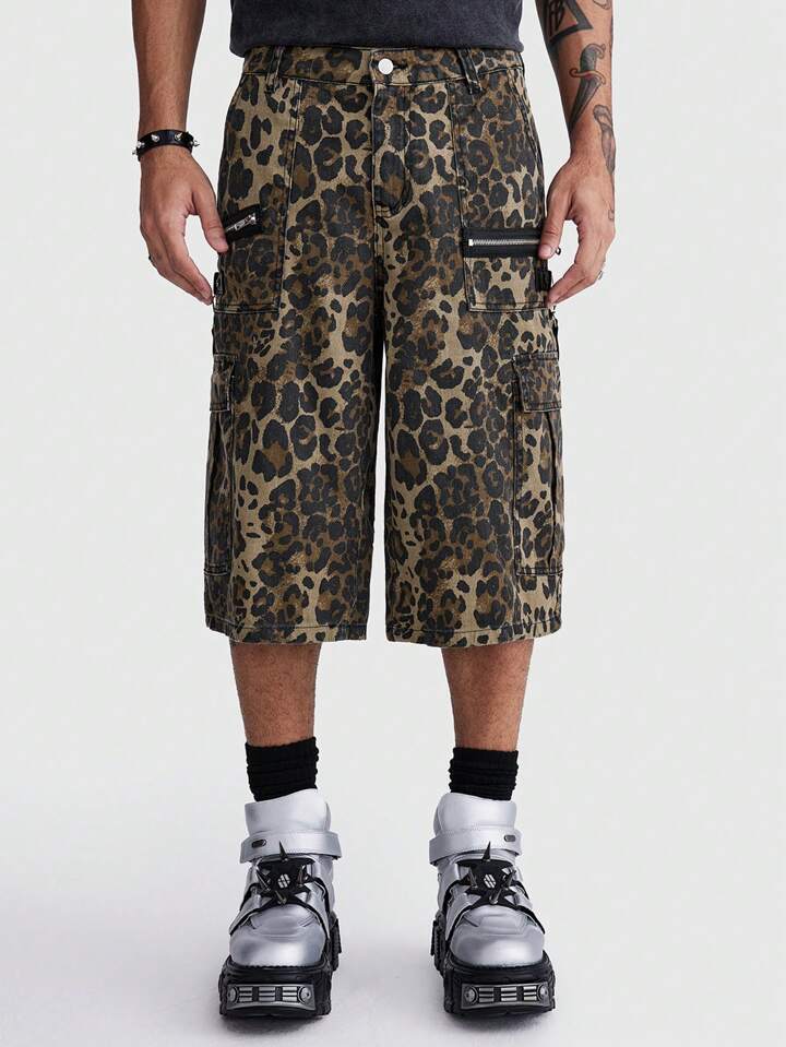 Street Life Herren Leopard Camouflage Muster 3/4 Jeans, Street Punk Stil