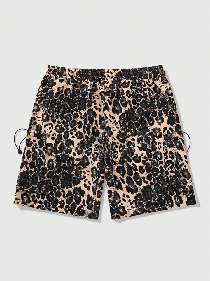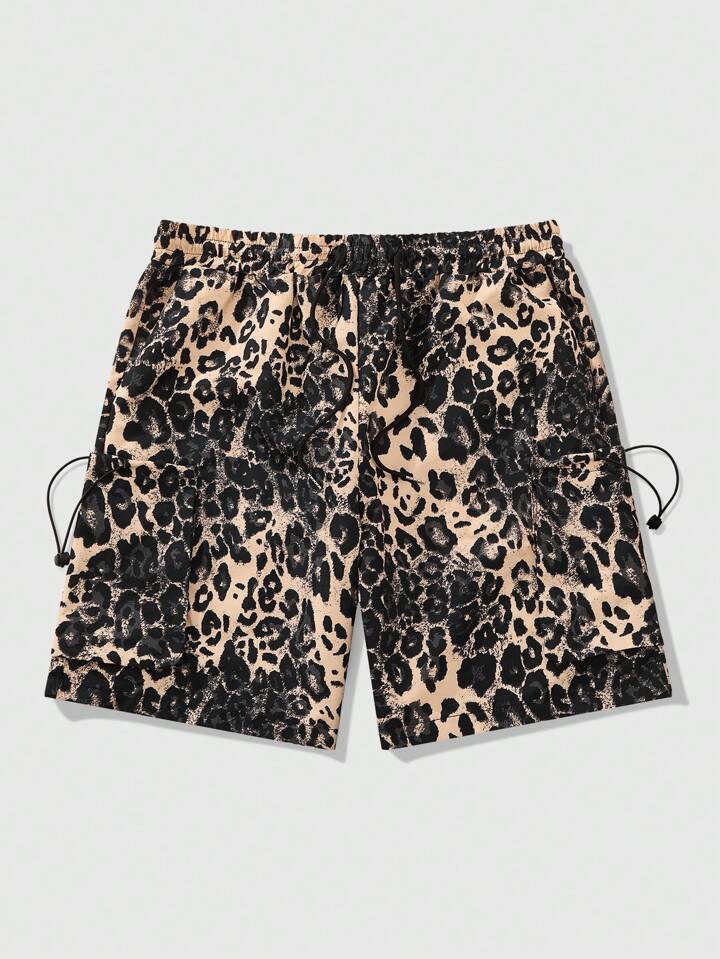 Street Life Herren Leoparden-Muster Cargo Shorts mit Gummibund