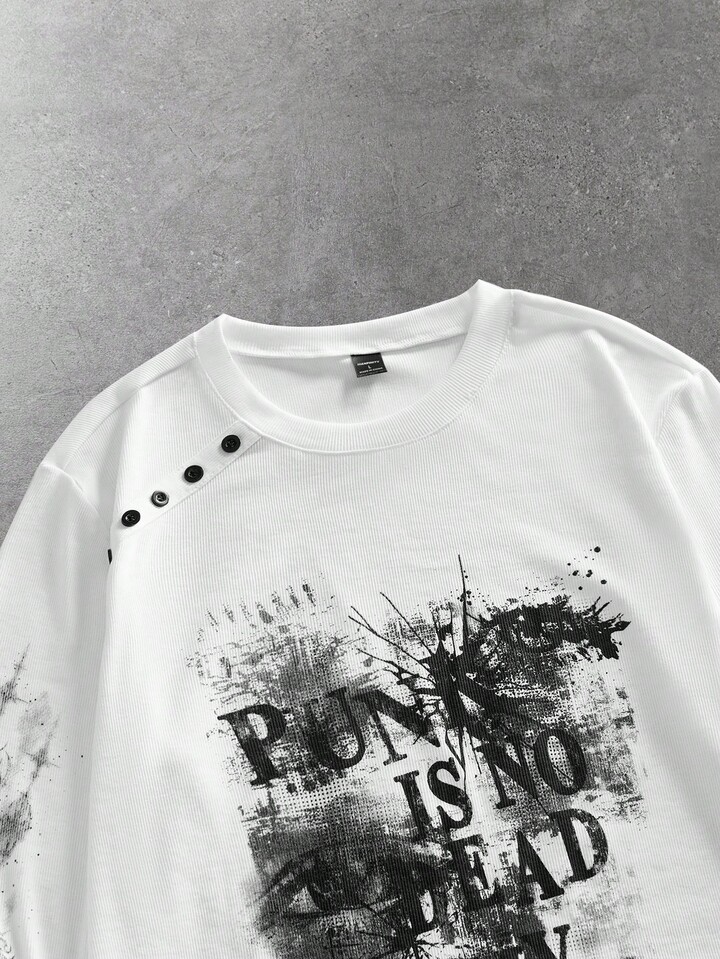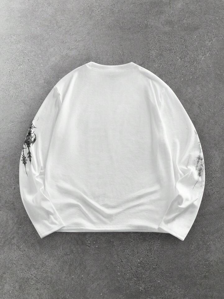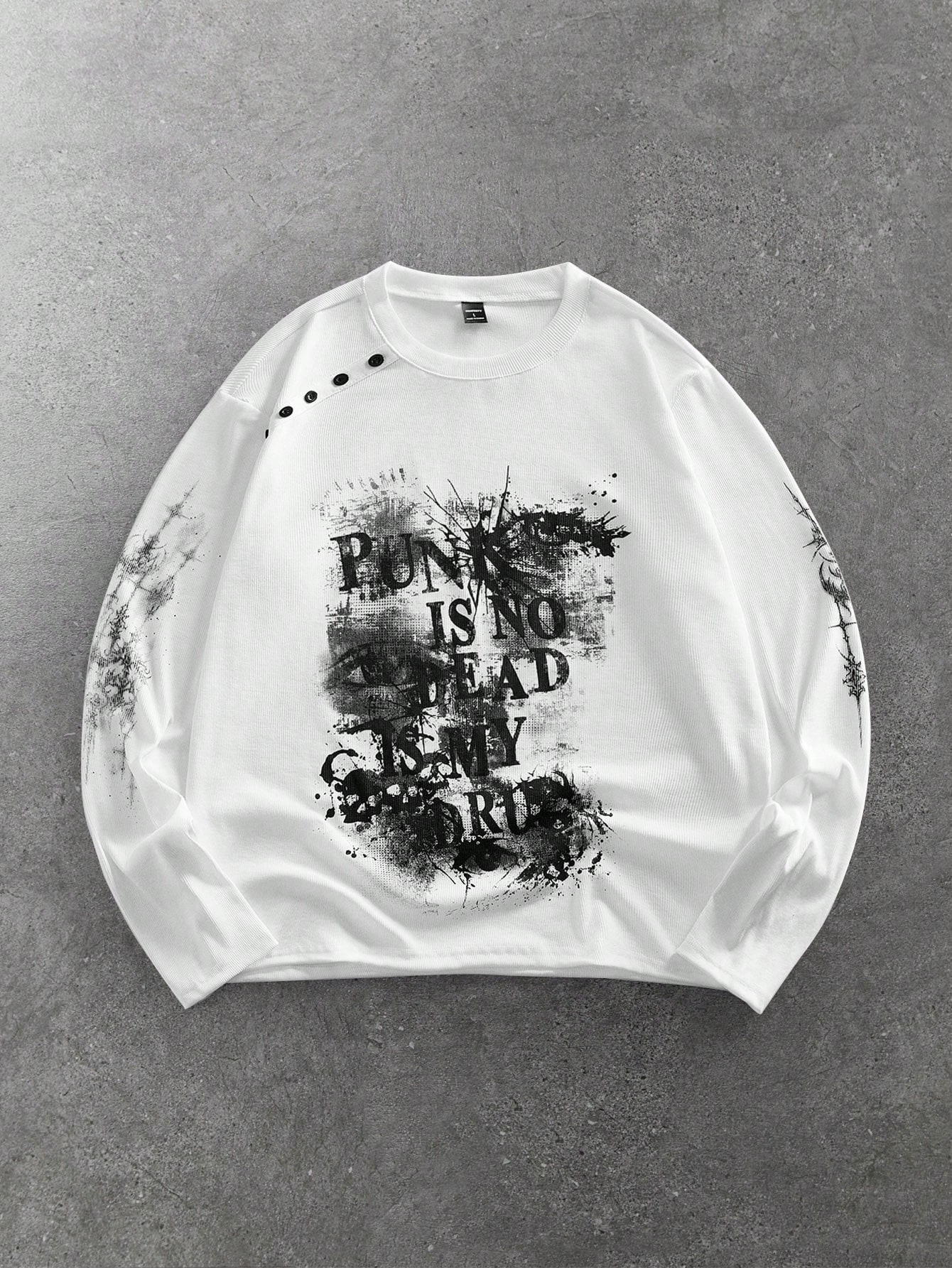 Street Life Herren Langarm T-Shirt mit Buchstaben- und Augen-Grafik am Rundhalsausschnitt